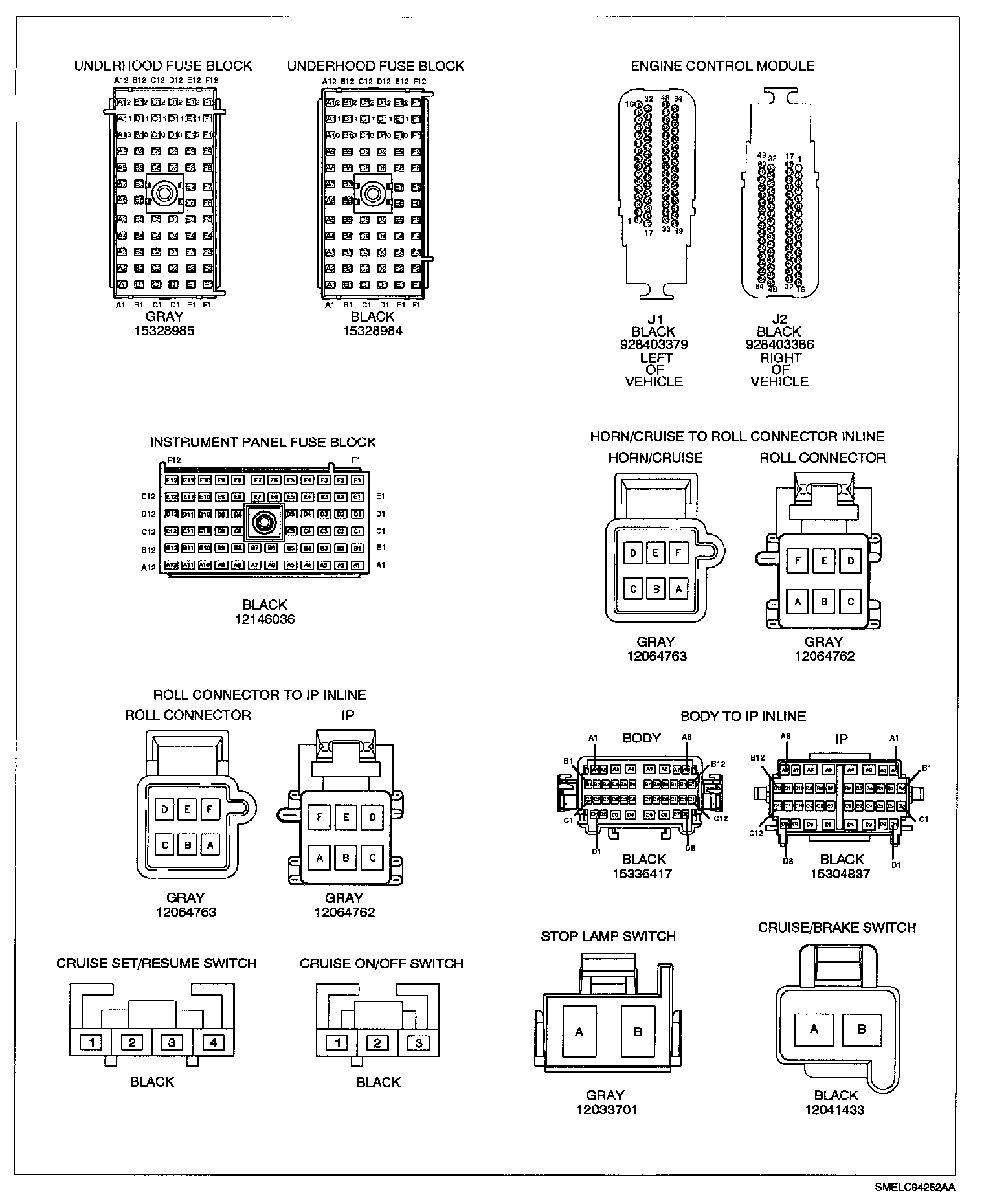Cruise Control Harness Connector Face Views: