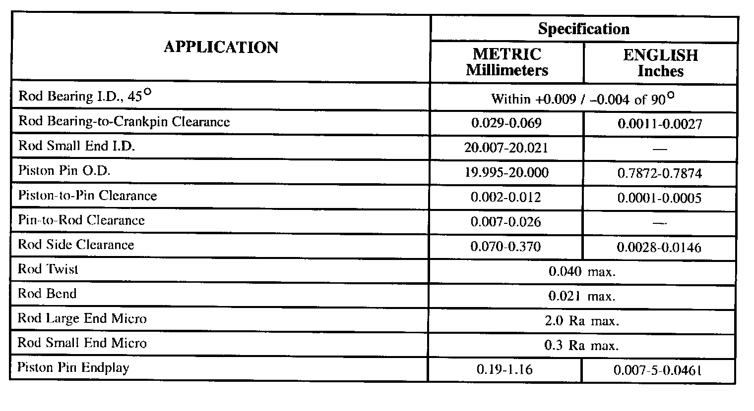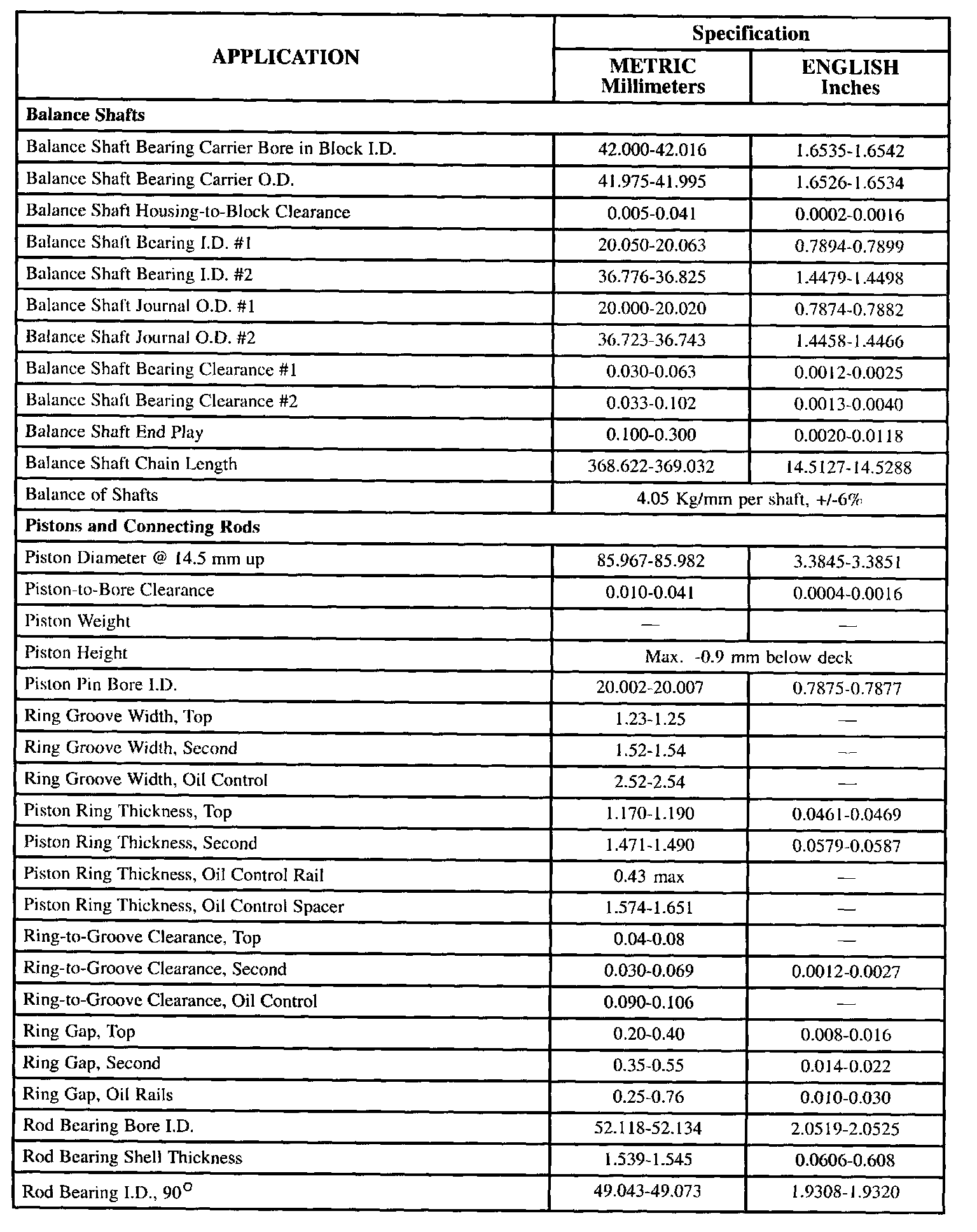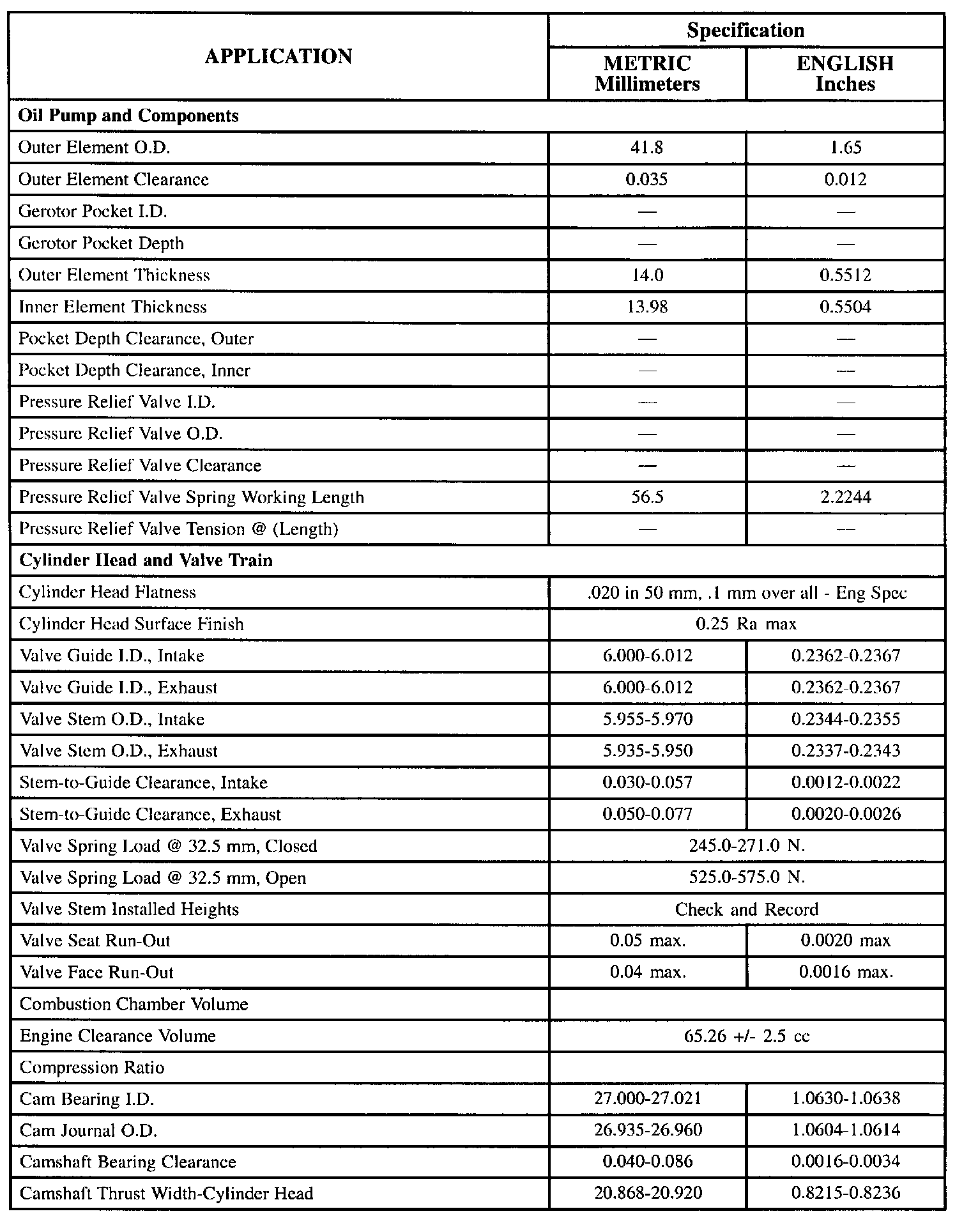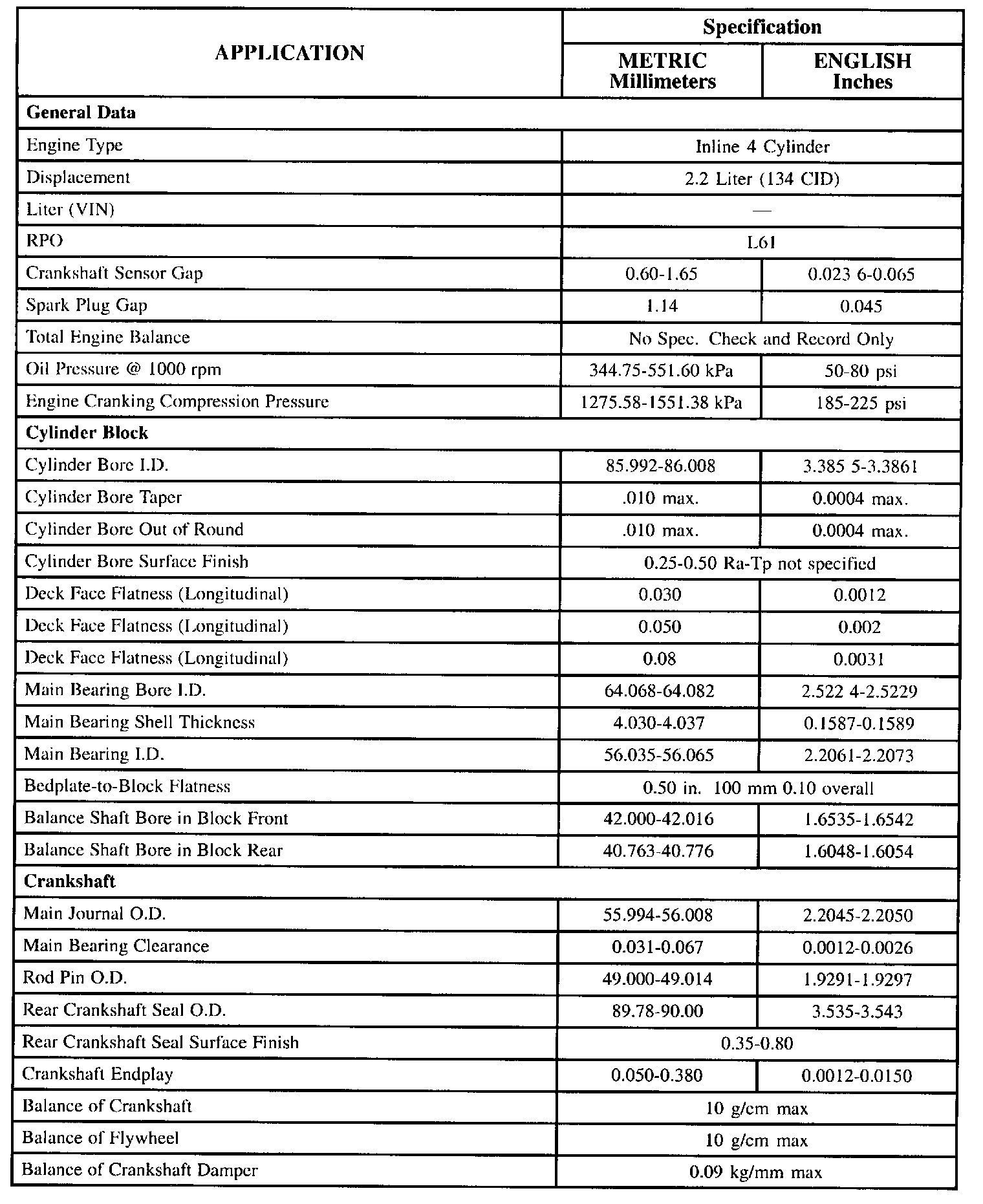 General Engine Specifications