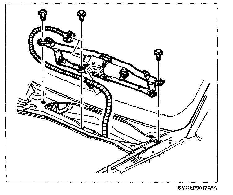 6. Remove wiper module fasteners and remove wiper module from cowl.