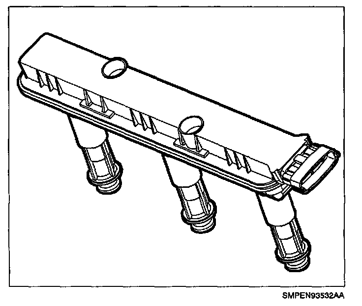 Each Electronic Ignition (EI) module (there are two total) is located directly over each cam cover. The electronic ignition system uses a coil over plug design used to eliminate the need for spark plug wires. Each EI module houses three primary coils, three secondary coils as well as three drivers used to supply current to each of the three primary coils. Each secondary coil fires independently of one another solely based on ECM control. The ECM sends a low current 5 volt control signal, which turns On a driver internal to the EI module allowing current to flow to one of the three primary coils. The time the ECM holds the control signal high is called the dwell time. As the ECM turns Off the control signal, the secondary coil will fire out of its secondary tower. The spark will travel down the spark plug boot across the spark plug gap to ignite the cylinder air/fuel charge. The ECM uses 3 independent control signals to fire each cylinder within that specific bank.