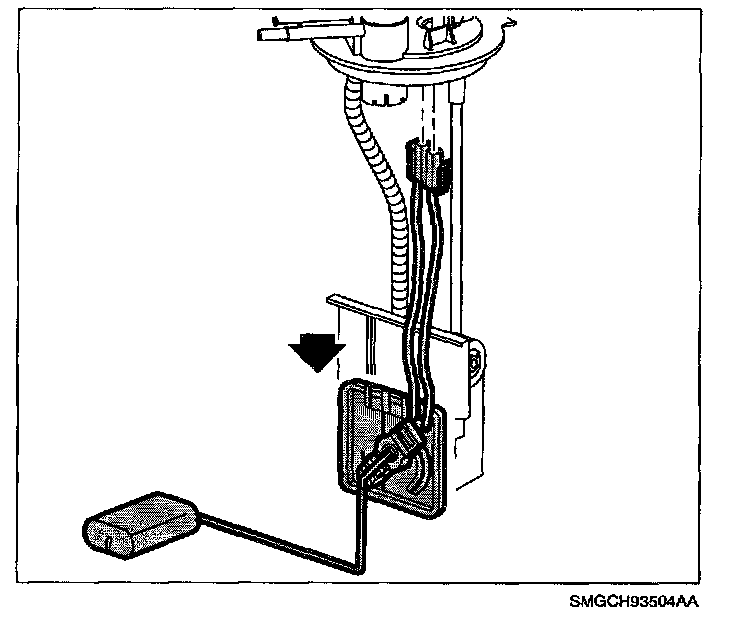 Fuel level information is accomplished by using two variable resistance fuel level sensors in series, which vary resistance according to changes in the level of fuel in the fuel tank. The ECM supplies a 5 volt reference through a pull-up resistor to the primary fuel level sensor, which is part of an assembly to the primary fuel pump module (right side of fuel tank). The primary fuel level sensor is electrically connected to the secondary fuel level sensor, which is part of an assembly to the secondary fuel pump module (left side of fuel tank). The secondary fuel level sensor is connected to ground. When the level of fuel in the fuel tank is high, each sensor resistance is low (low voltage on signal line). As the fuel level decreases, the sensor resistances increase (higher voltage on signal line). The ECM monitors the fuel level sensor signal voltage to determine fuel tank level. The fuel level sensor signal voltage ranges between 400 mV to 2.5 volts with each sender arm at the highest and lowest positions.