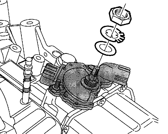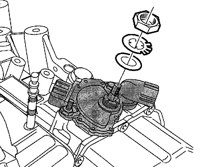4. Install flat washer, lock tab washer and nut.