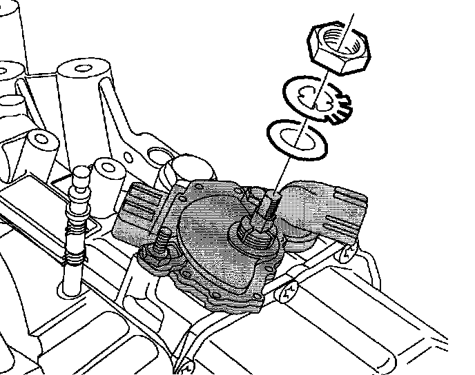 3. Install flat washer, lock tab washer and nut.