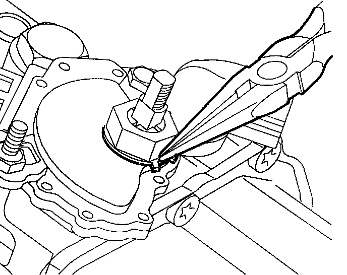 8. Using a screwdriver, bend lockwasher tabs on manual shaft nut retainer down.