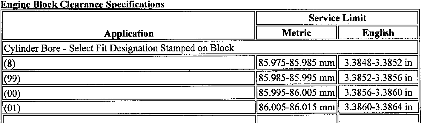 Engine Block Clearance Specifications:
