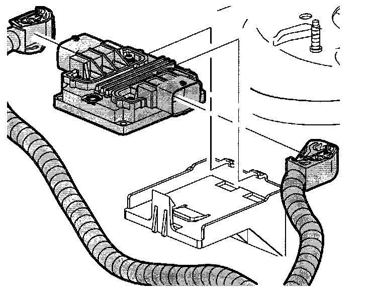 2. Pull retaining tang from the transaxle control module and rotate the transaxle control module up. Remove the transaxle control module from transaxle control module bracket.