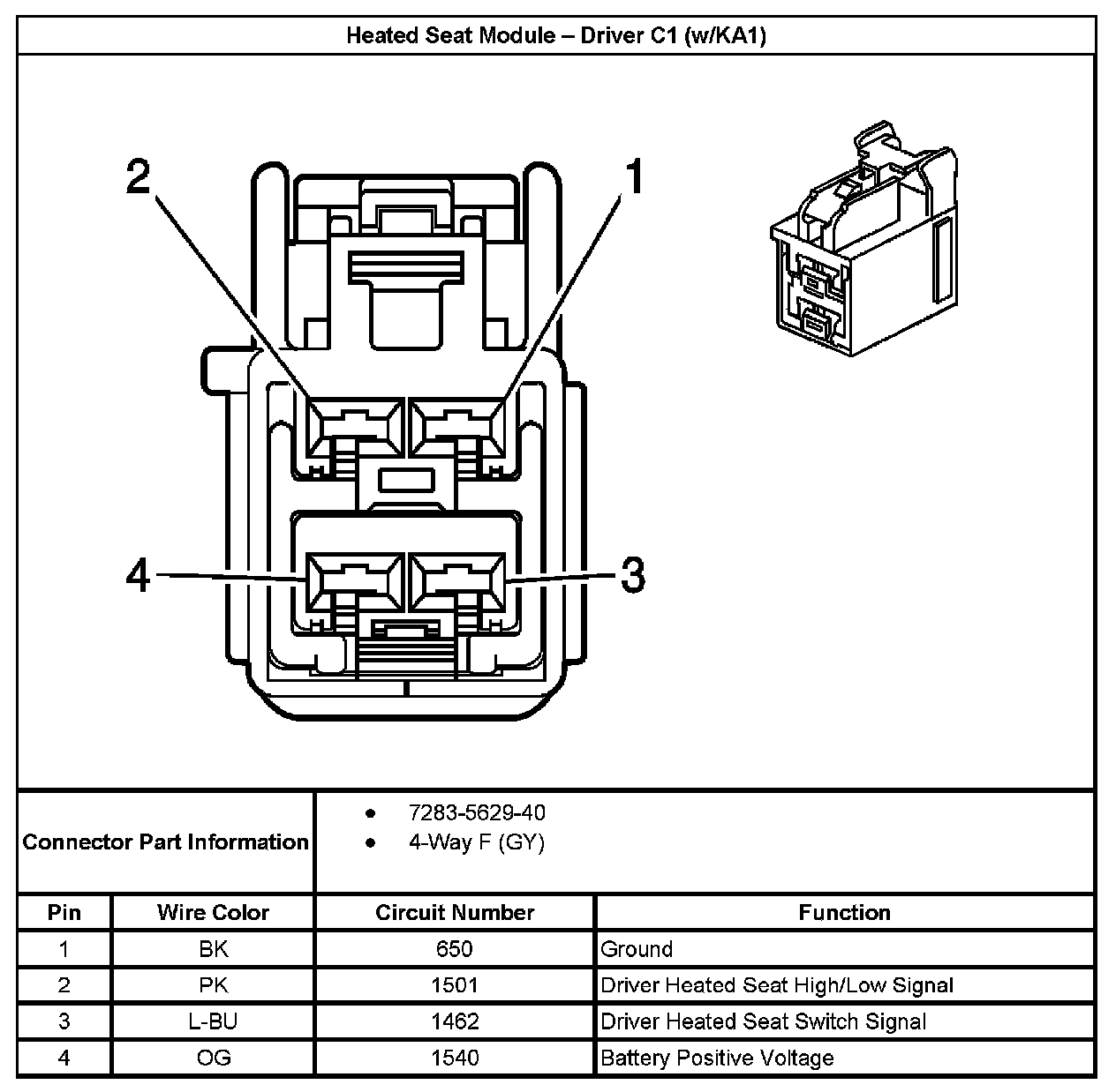 Heated Seat Module - Driver C1 (With RPO Code KA1):