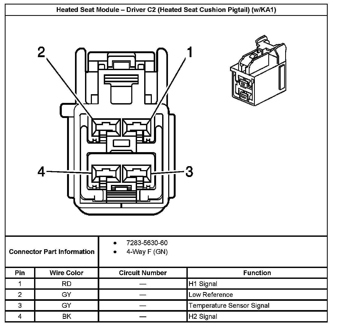 Heated Seat Module - Driver C2 (Heated Seat Cushion Pigtail) (With RPO Code KA1):