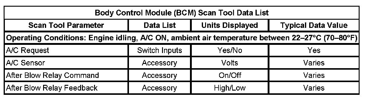SCAN TOOL DATA LISTBody Control Module (BCM) Scan Tool Data List: