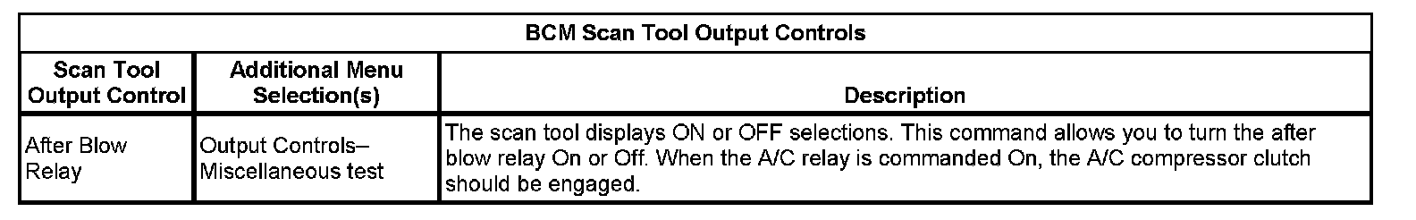 BCM Scan Tool Output Controls: