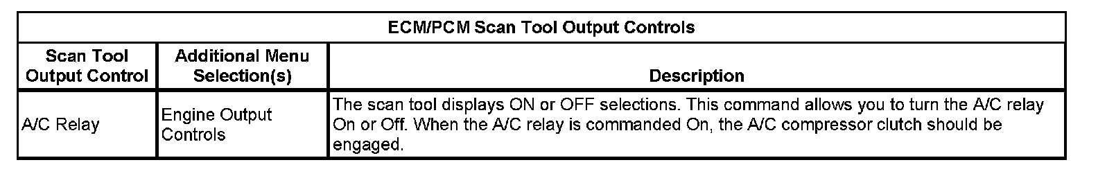 ECM/PCM Scan Tool Output Controls: