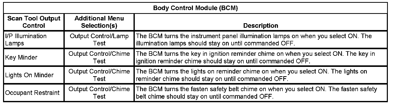 Scan Tool Output Controls - Body Control Module (BCM)
