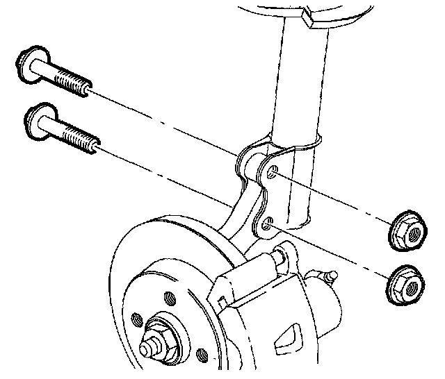 3. Remove the strut to knuckle nuts and bolts. Discard the nuts and bolts.