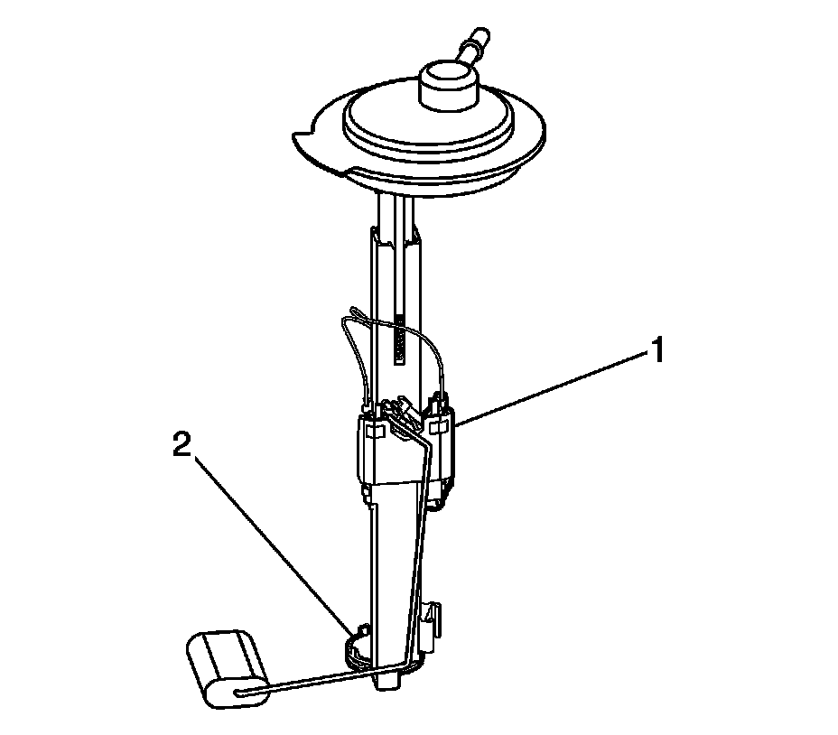 The fuel pump (2) is mounted in the primary fuel tank module reservoir. The fuel pump is an electric high-pressure pump. Fuel is pumped to the fuel injection system at a specified flow and pressure. The fuel pump delivers a constant flow of fuel to the engine even during low fuel conditions and aggressive vehicle maneuvers. The control module controls the electric fuel pump operation through a fuel pump relay.