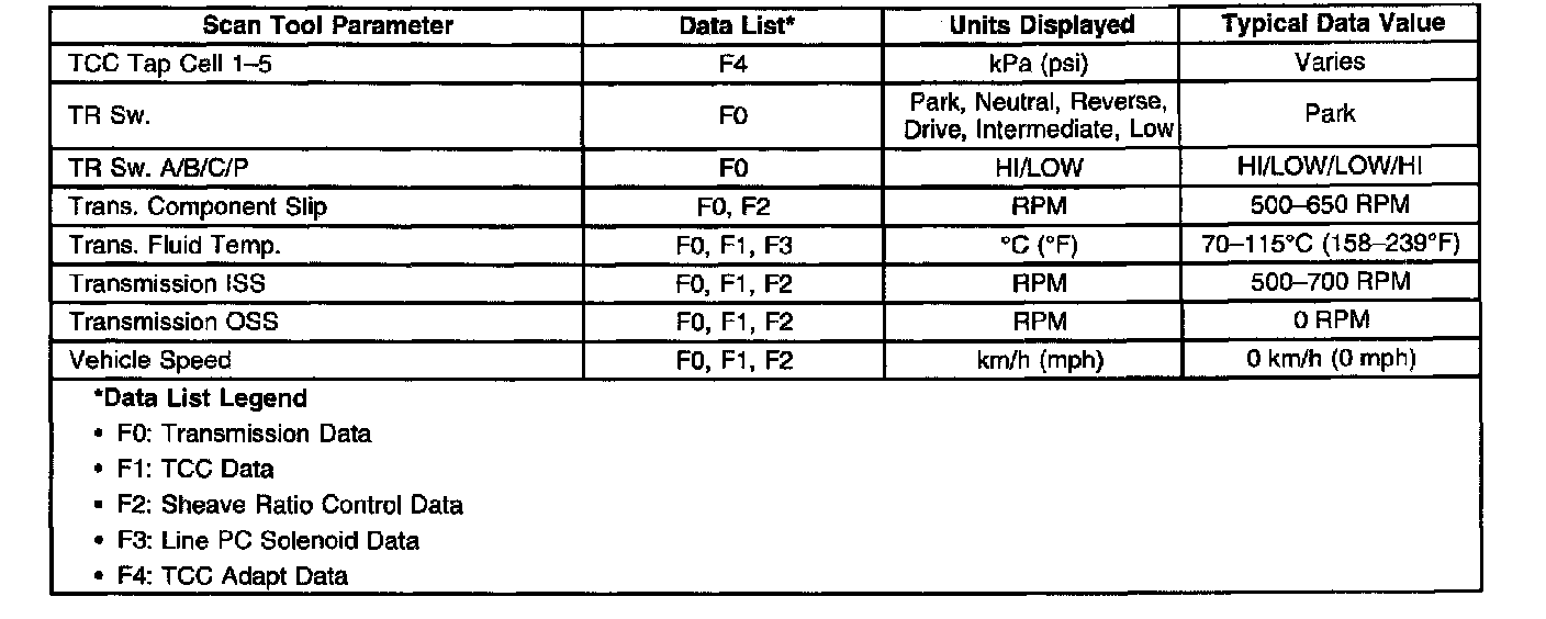 Transmission Scan Tool Data ListUse the Scan Tool Data List under the following conditions: