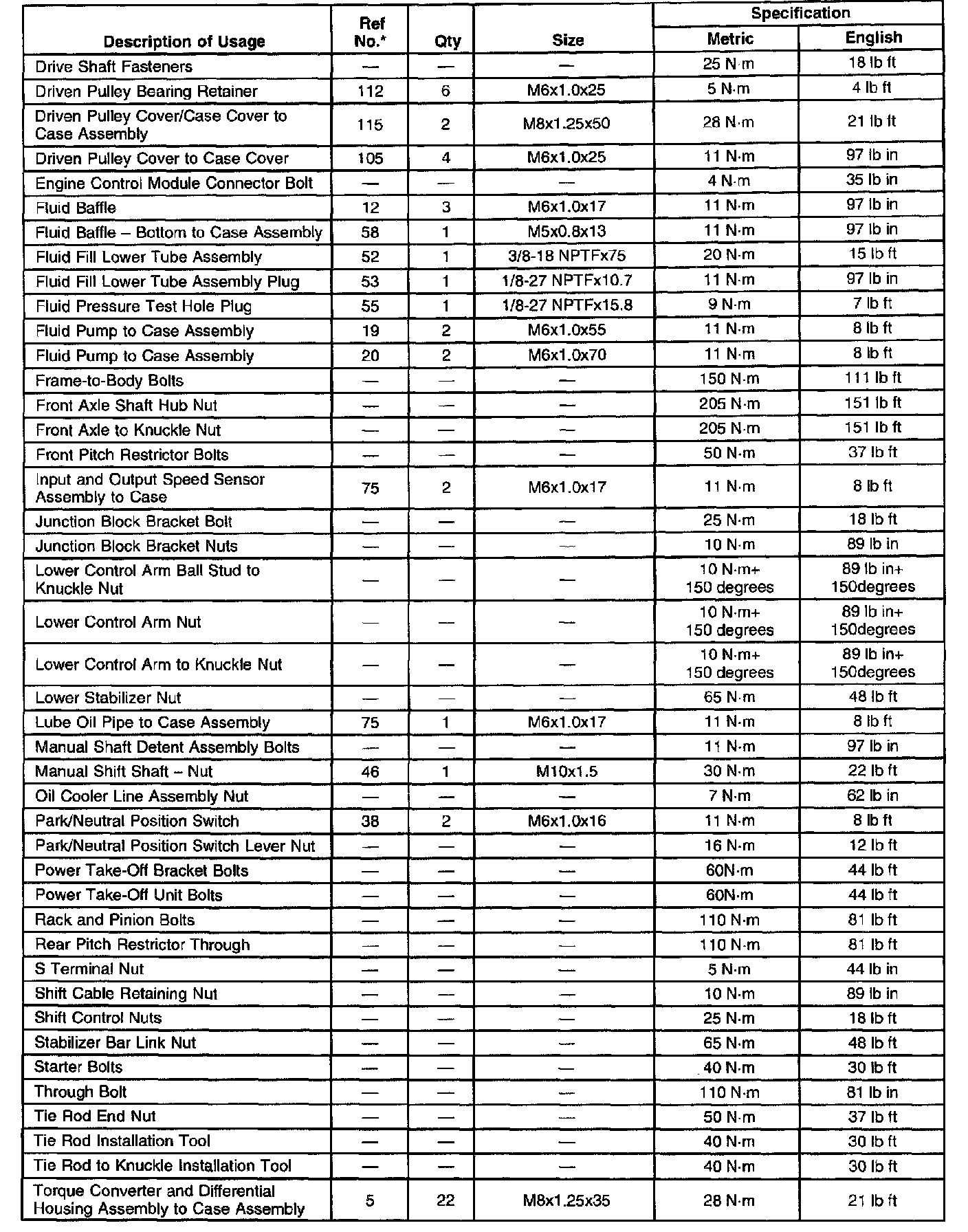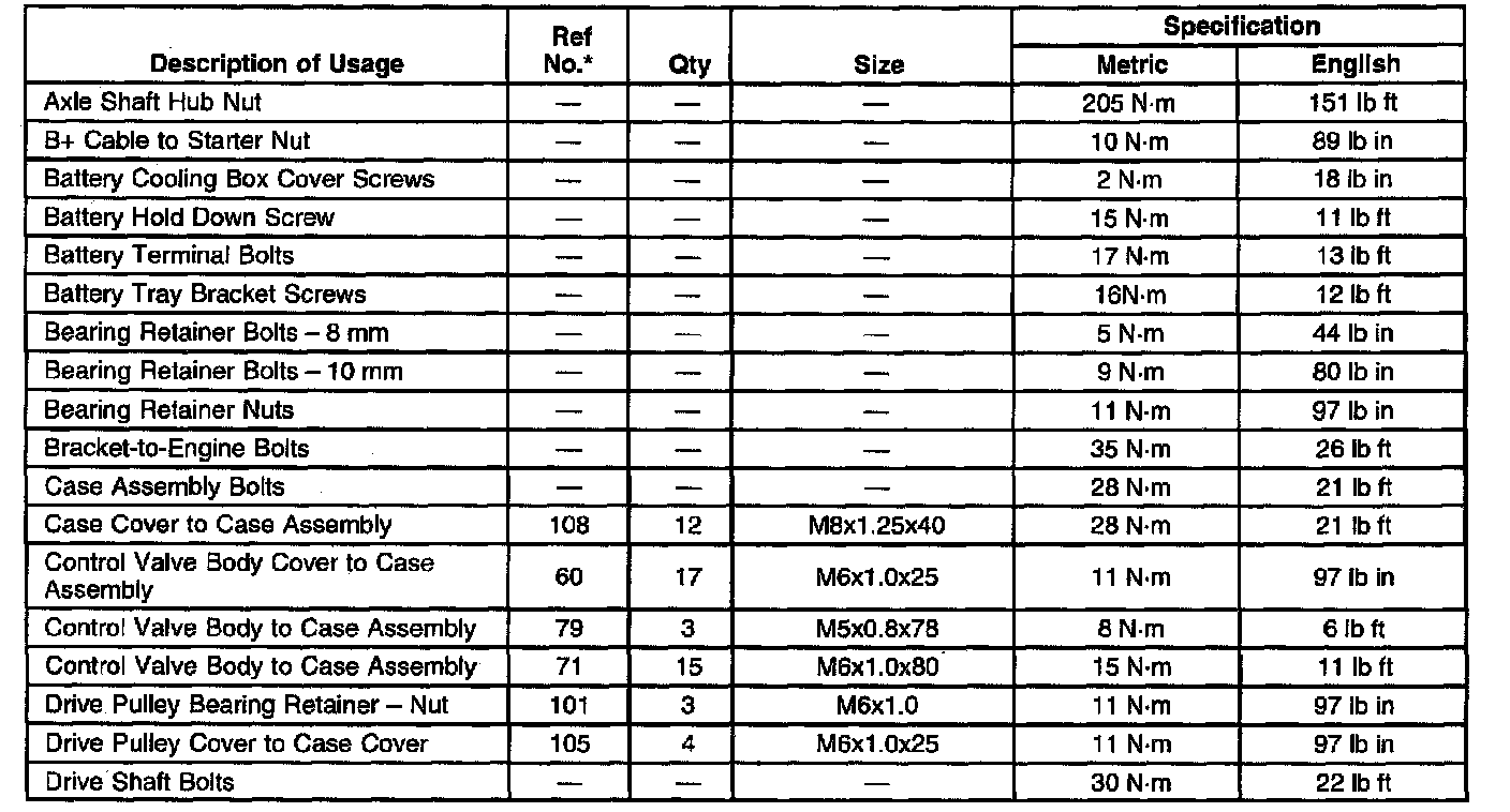 Fastener Tightening Specifications