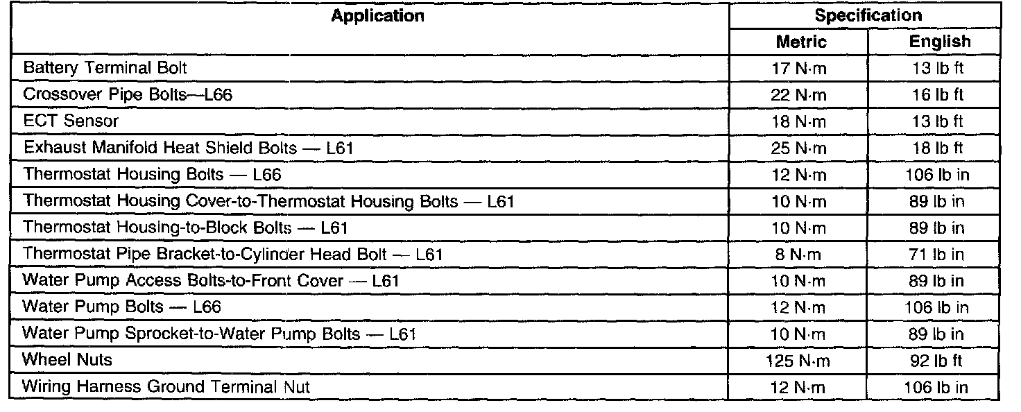 Fastener Tightening Specifications:
