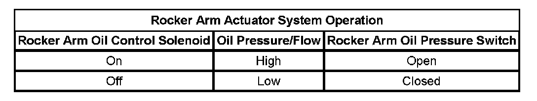 If there is an open or short in the rocker arm oil control solenoid or the solenoid electrical circuit, DTC P2648 or DTC P2649 sets. If the rocker arm oil pressure switch detects oil pressure when there should be no pressure, DTC P2647 sets. If the rocker arm oil pressure switch detects no oil pressure when there should be pressure, DTC P2646 sets.