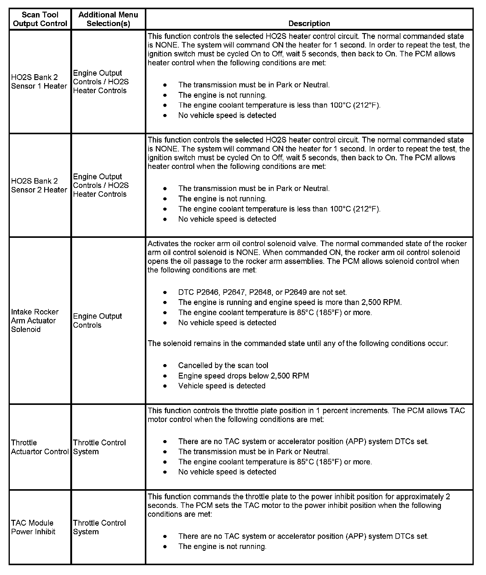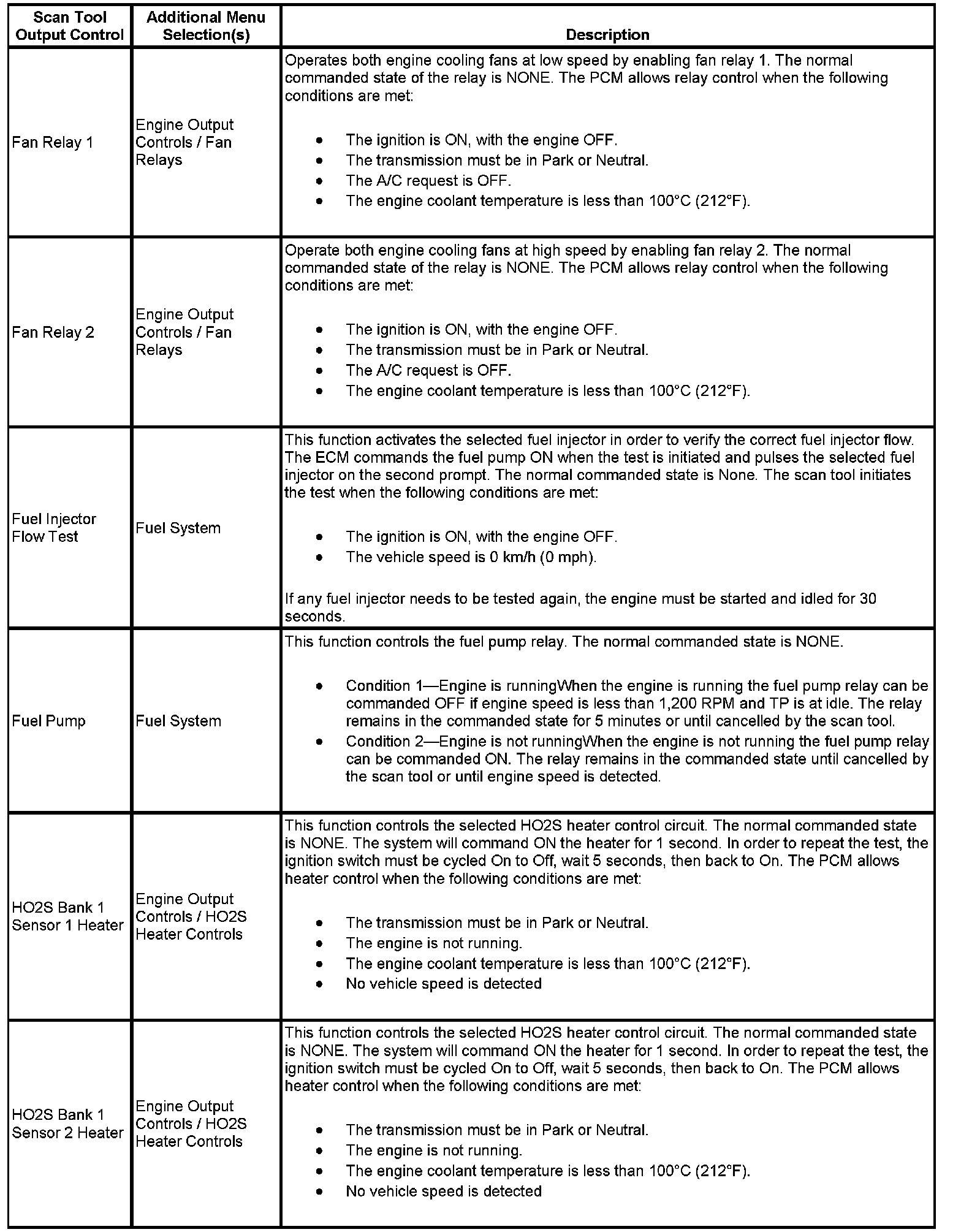 Scan Tool Output Controls
