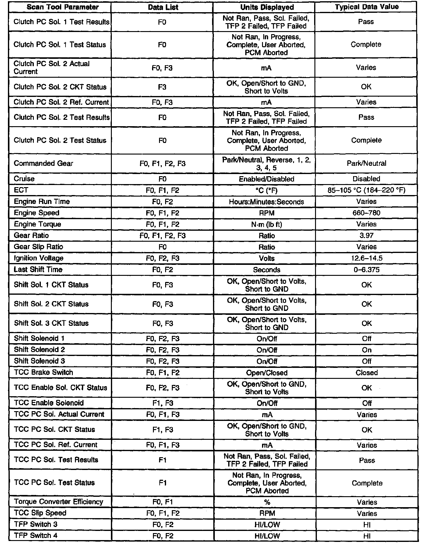 Scan Tool Data Values & Data List