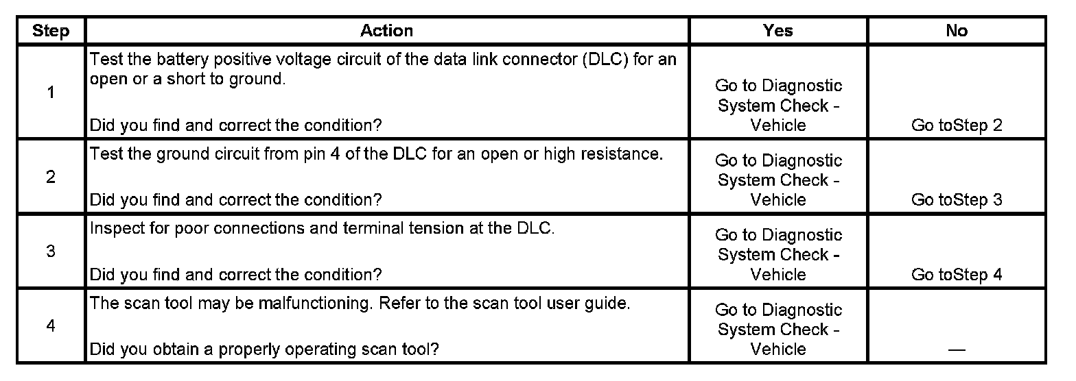 4. If the battery positive voltage and ground circuits of the DLC are functioning properly. The malfunction must be due to the scan tool.