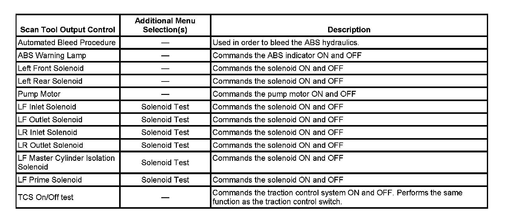 Scan Tool Output Controls: