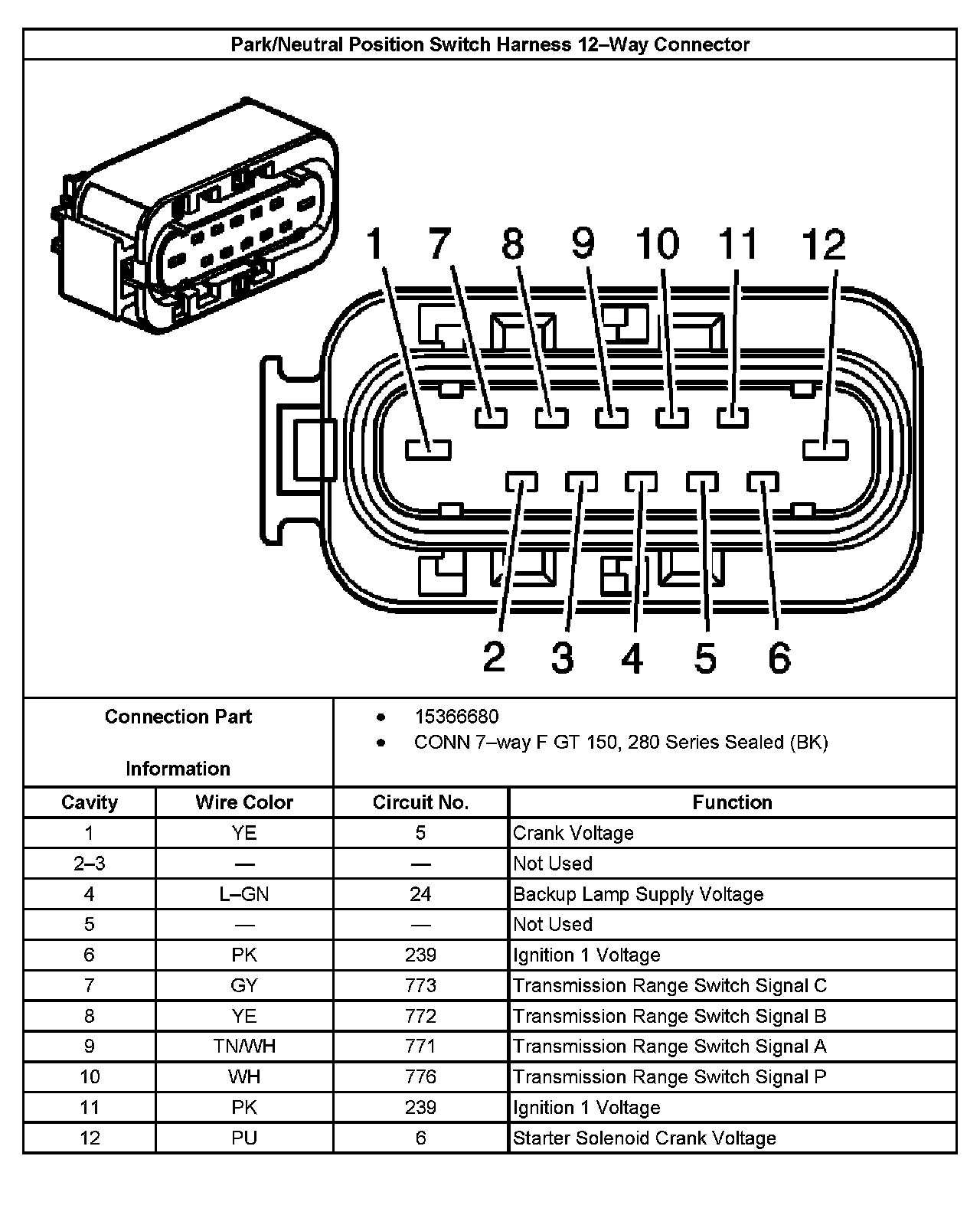 Park/Neutral Position Switch Harness 12-Way Connector: