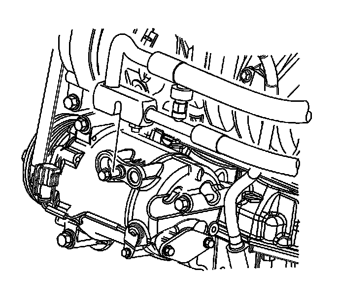 5. Remove the compressor hose bolt from the compressor.