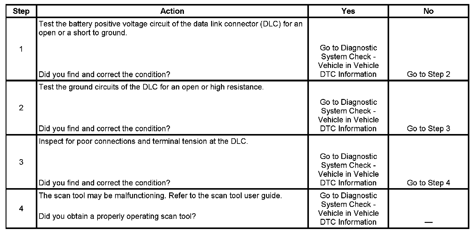 4. If the battery positive voltage and ground circuits of the DLC are functioning properly, the malfunction must be due to the scan tool.