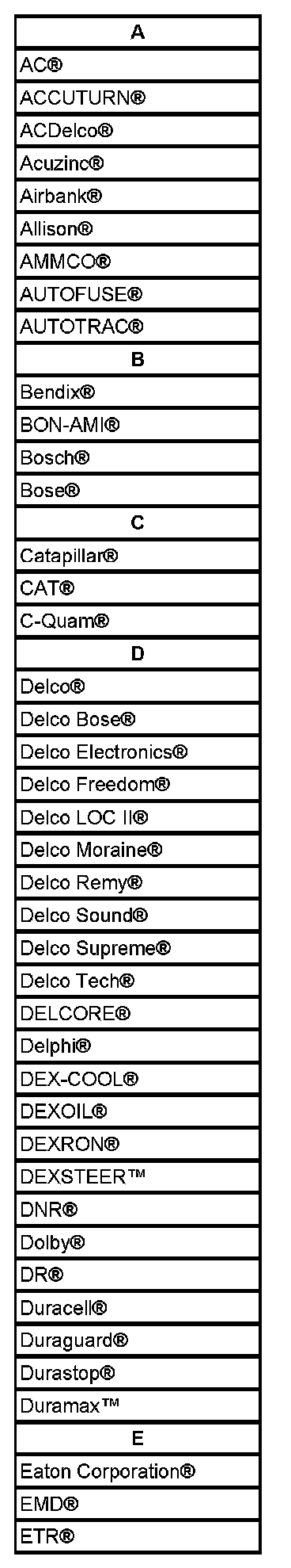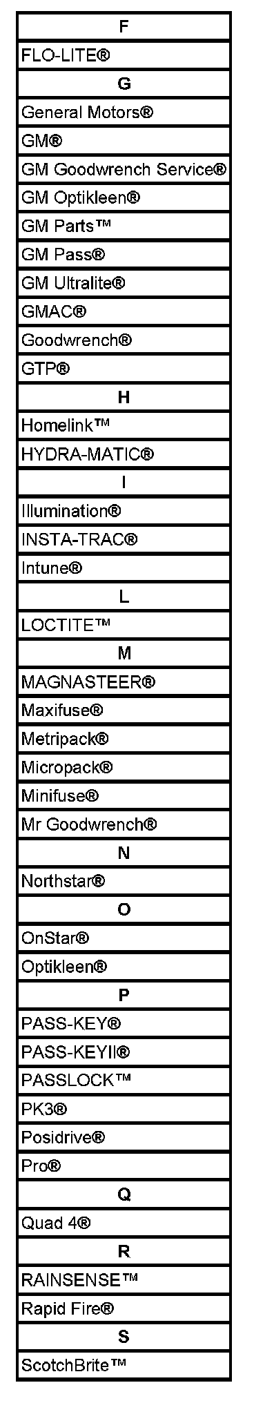 Listed are Registered Trademarks ((R)) or Non-Registered Trademarks ((TM)) which may appear in this service data.