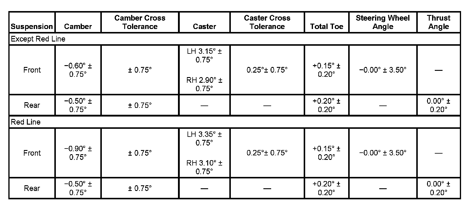 Wheel Alignment Specifications