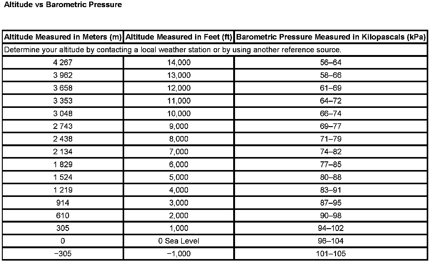 Pressure, Vacuum and Temperature Specifications