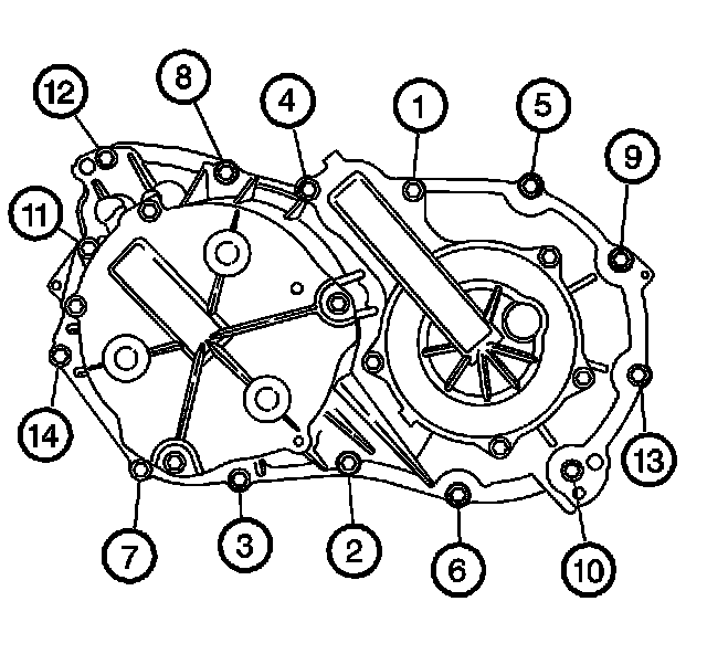 Important: Two of the 14 case cover bolts are longer than the other bolts. These two bolts are used for the driven pulley cover.