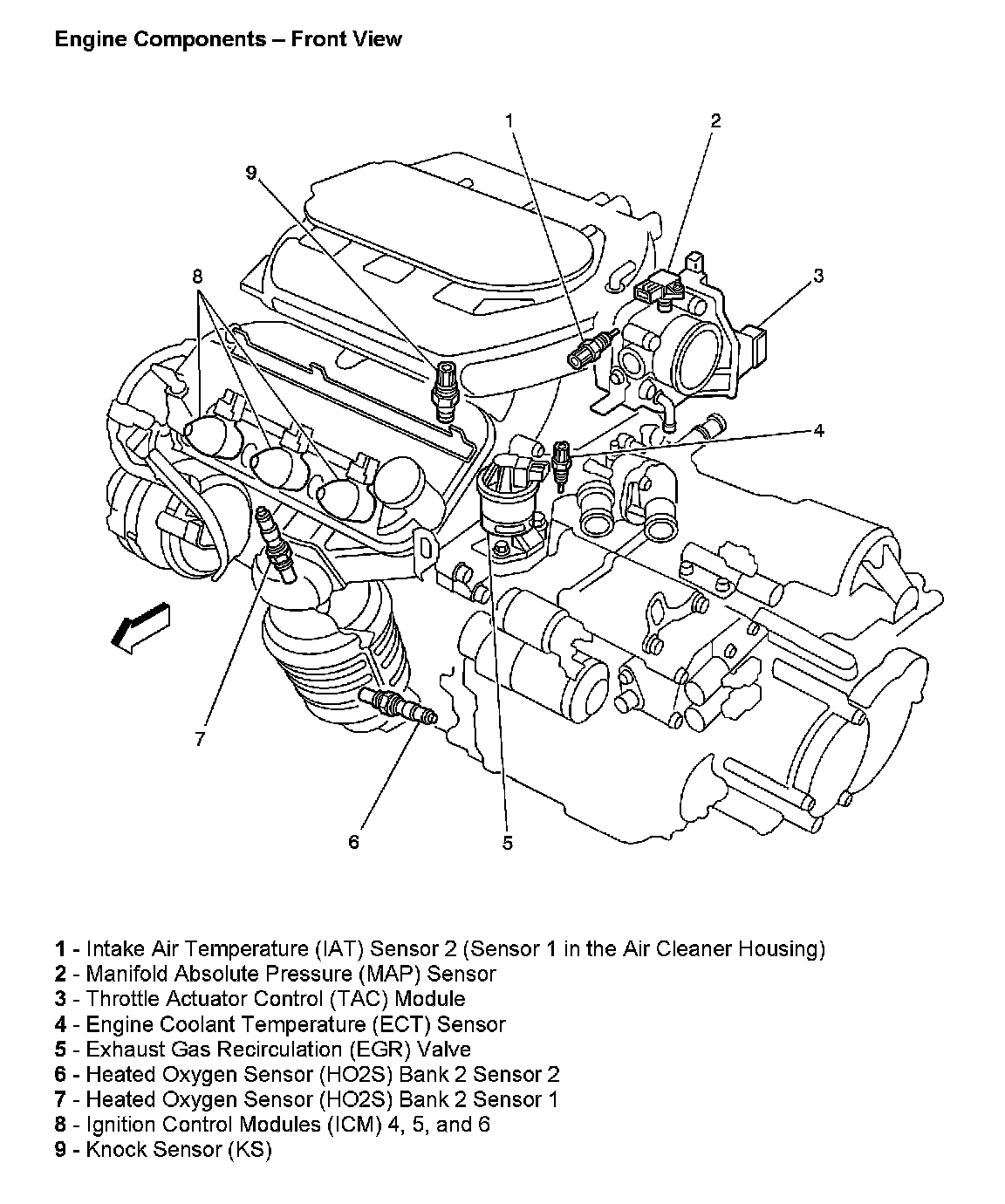 Engine Components - Front View: