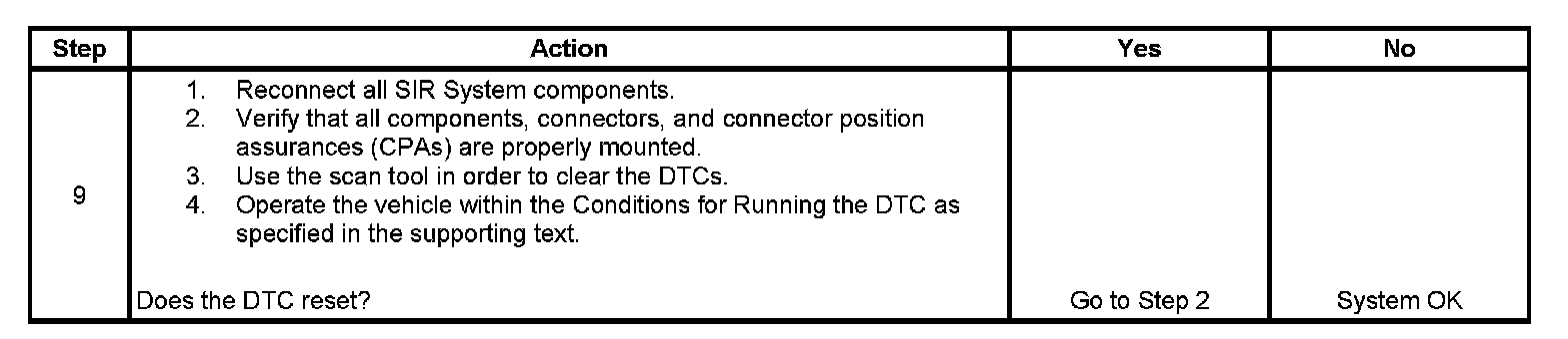 6. This step tests to see what DTCs are present. If DTC B0109 is present, test the side impact module LR for a short between high and low circuits. If DTC B0110 is present, test the side impact module LR high and low circuits for an open and for high resistance. If DTC B0111 is present, test the side impact module LR high and low circuits for a short to ground or a short to voltage.