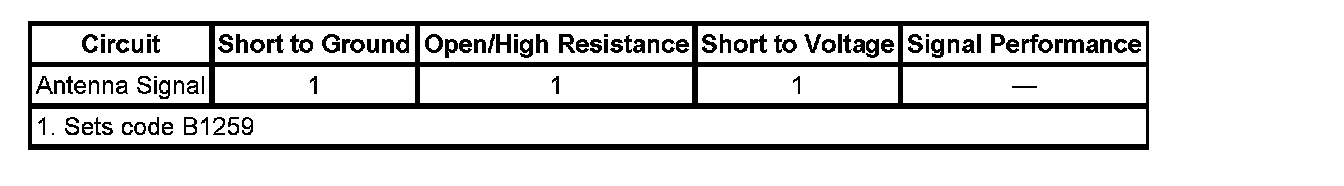 The antenna signal circuit is a coaxial cable that carries the radio signal information received by the antenna. The antenna cable also provides a path for D.C. current for powering the antenna.