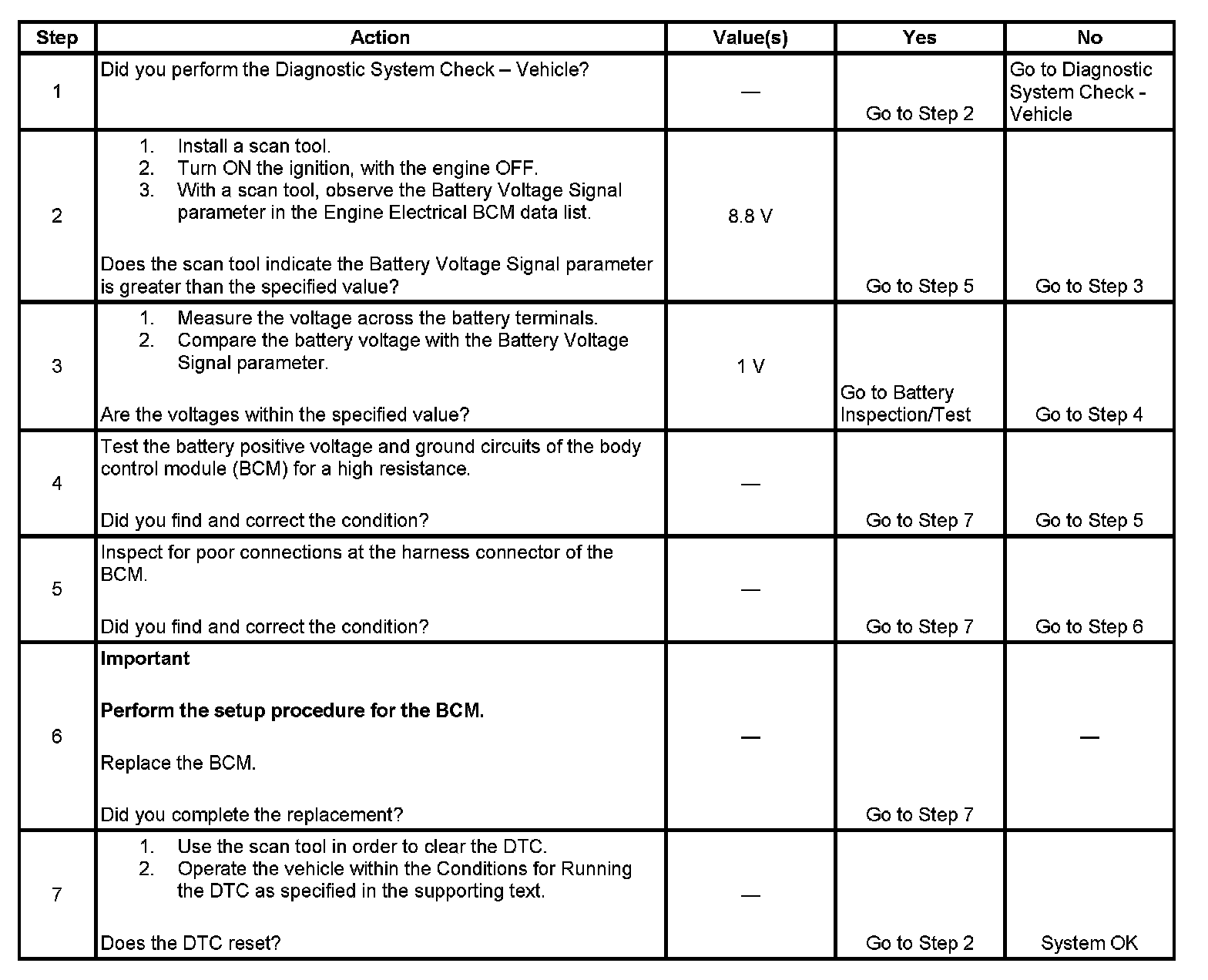 3. This step compares battery voltage with the voltage that the BCM calculates
