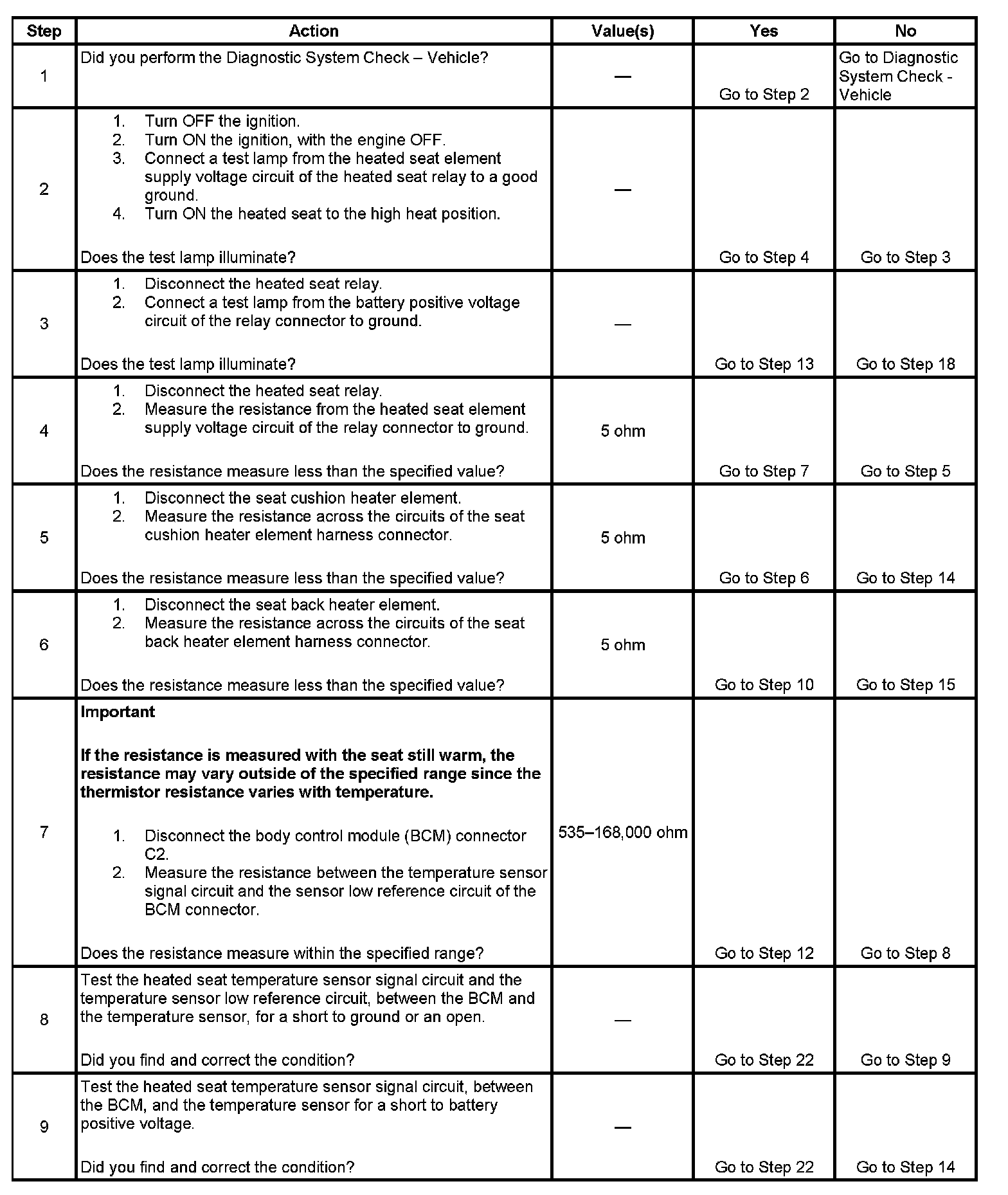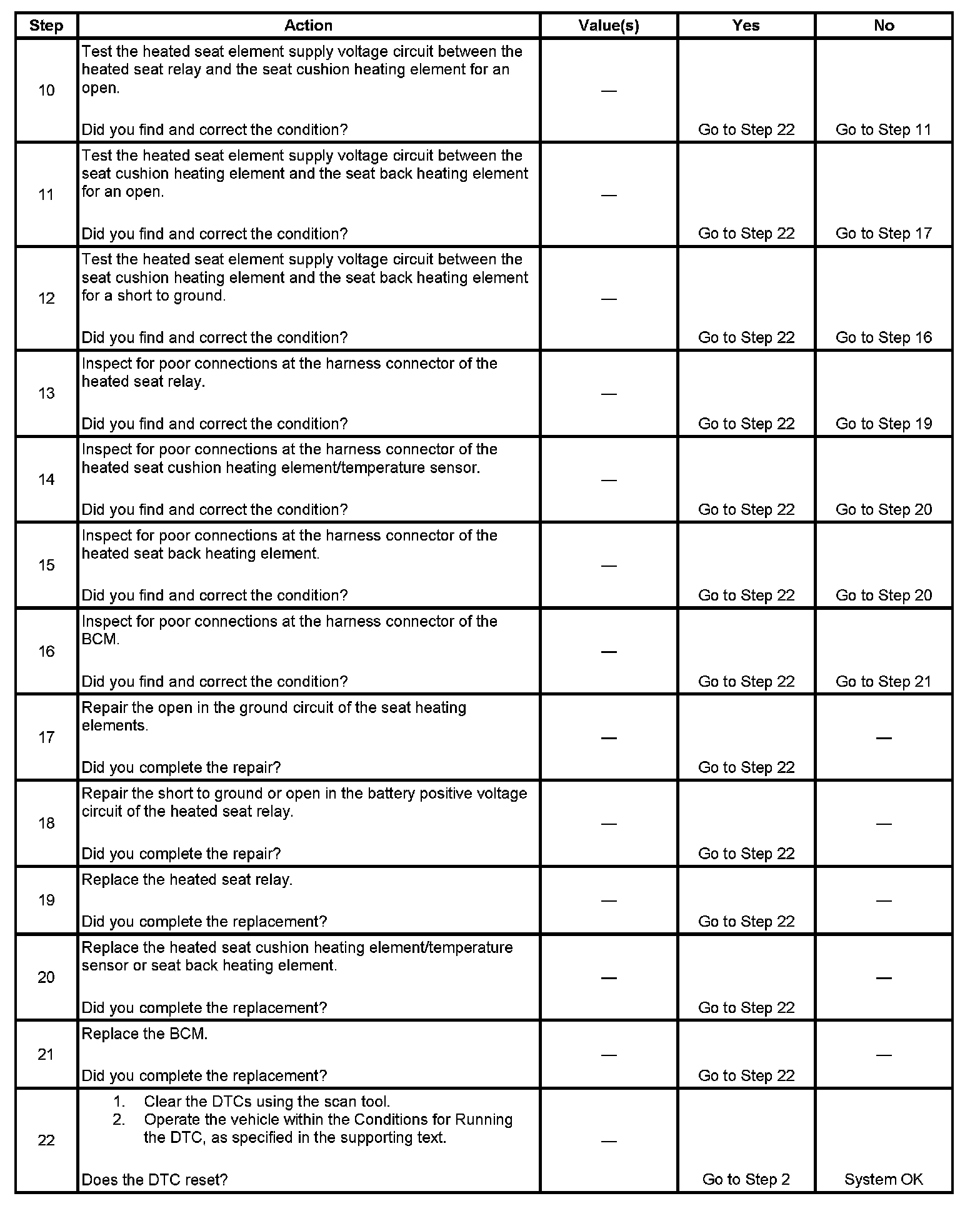- Faults in circuits of the heated seat system other than the temperature sensor may cause this DTC to set.