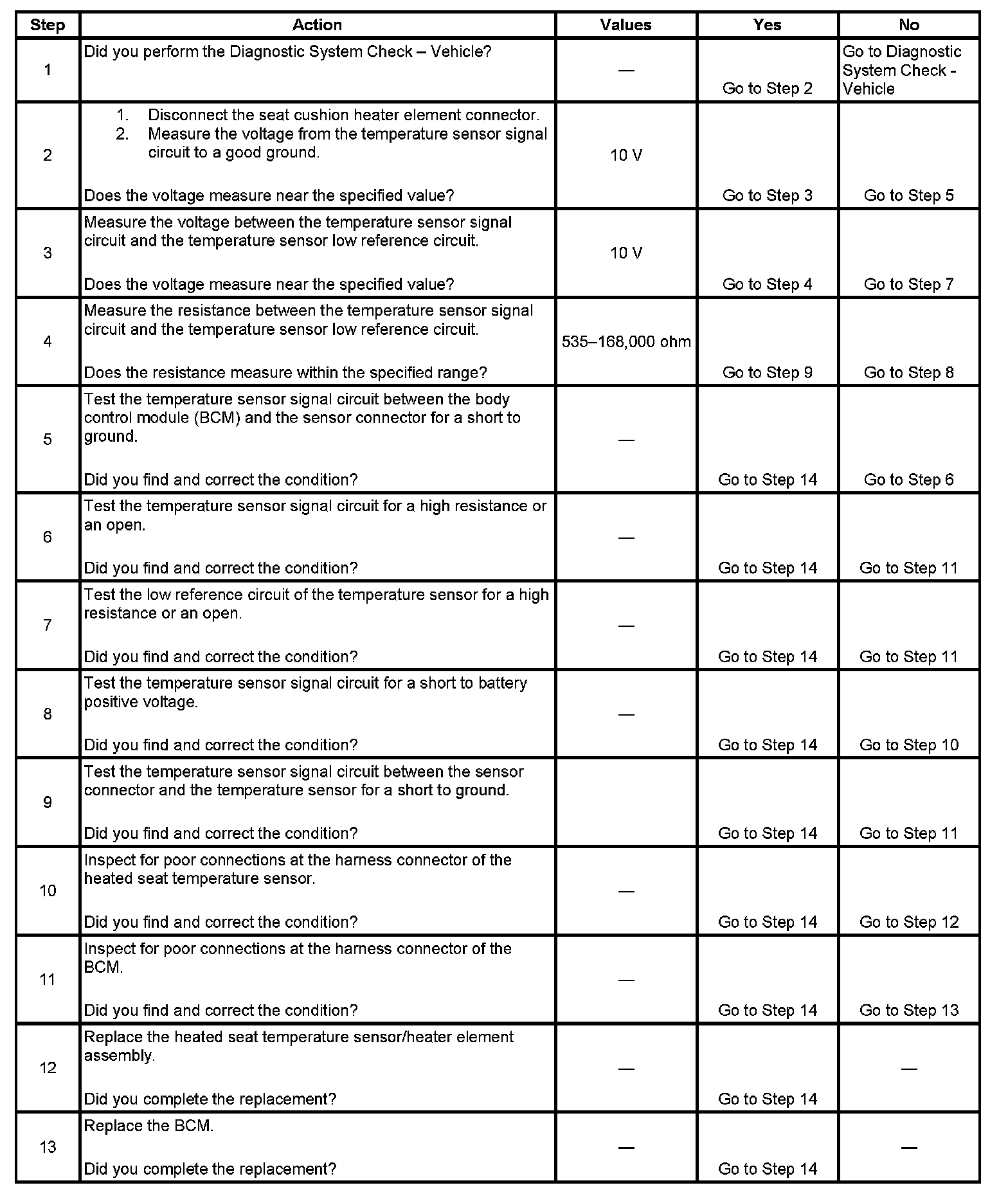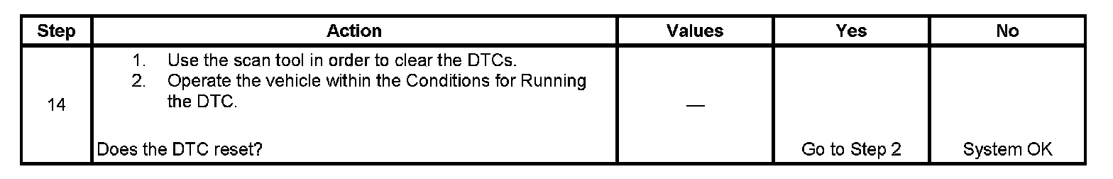 The numbers below refer to the step numbers on the diagnostic table.