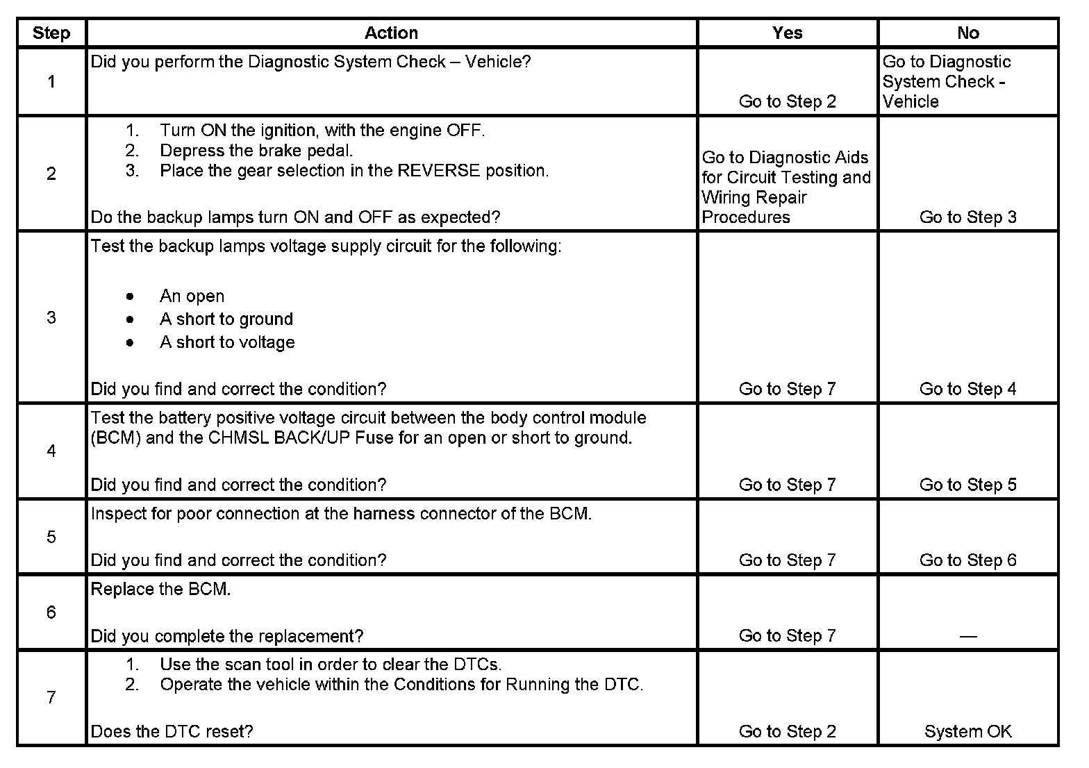 - When the backup lamps supply voltage circuit is shorted to ground or shorted to voltages.