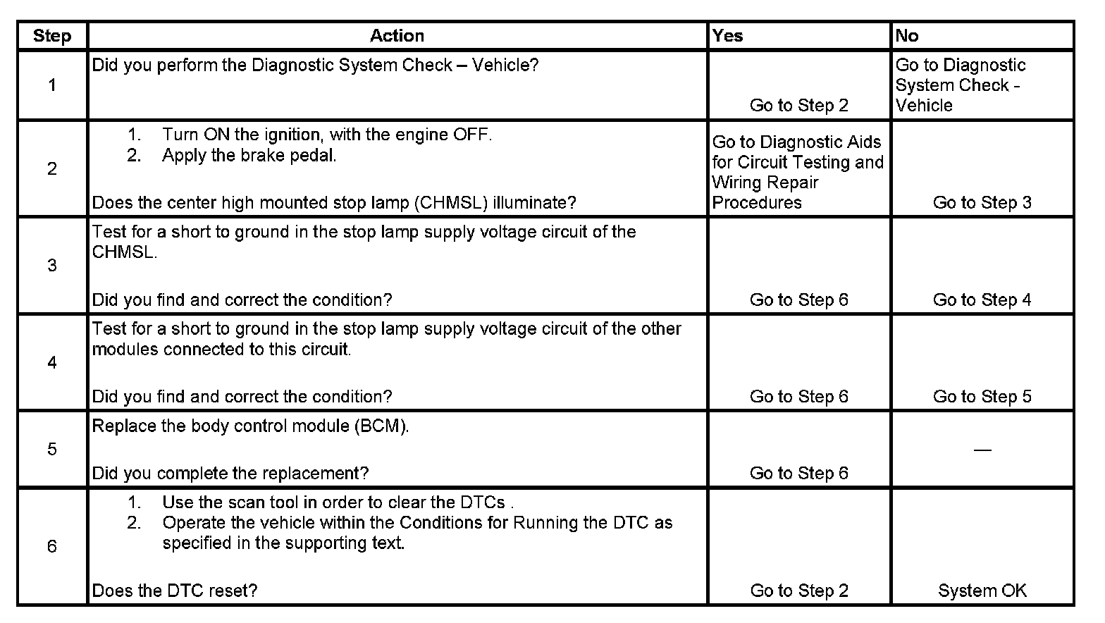 - When the BCM detects a short to ground in the stop lamp supply voltage circuit to the CHMSL.