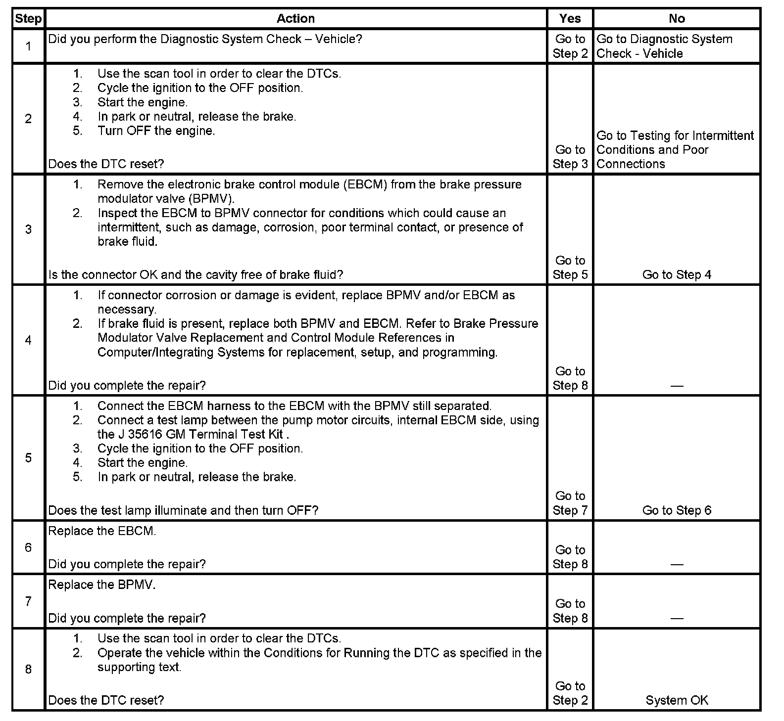 5. Tests the ability of the EBCM to control the pump motor. If the test lamp illuminates, the pump motor circuit within the EBCM is good.