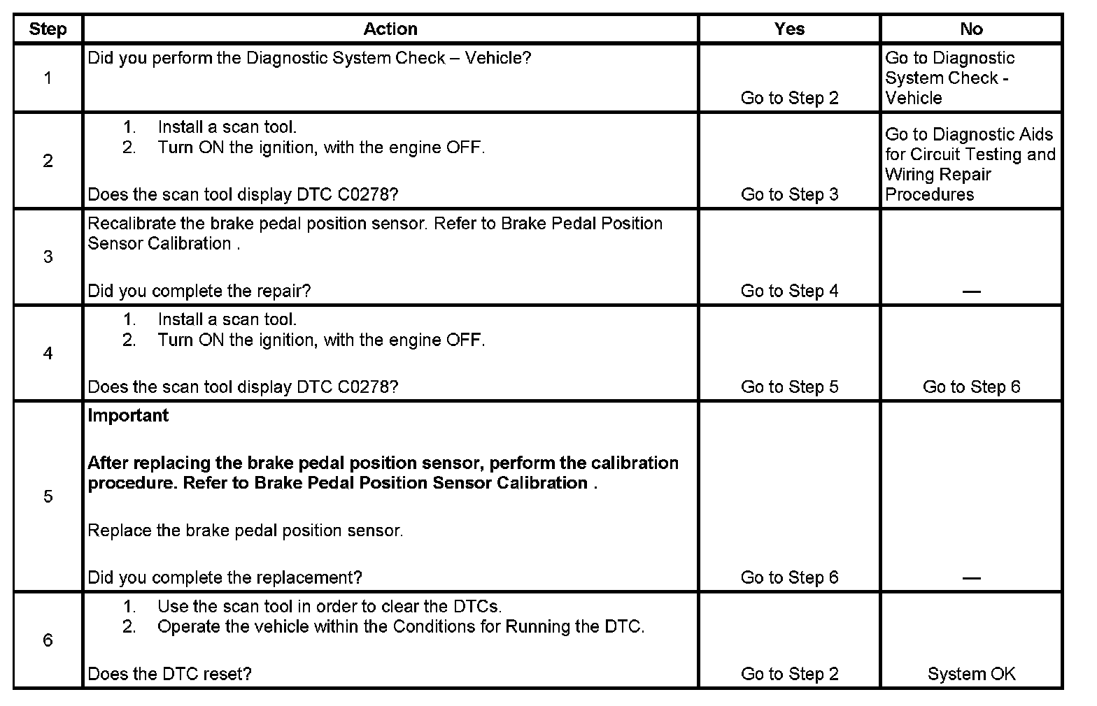- If DTC C0278 sets then recalibrate the brake position sensor.
