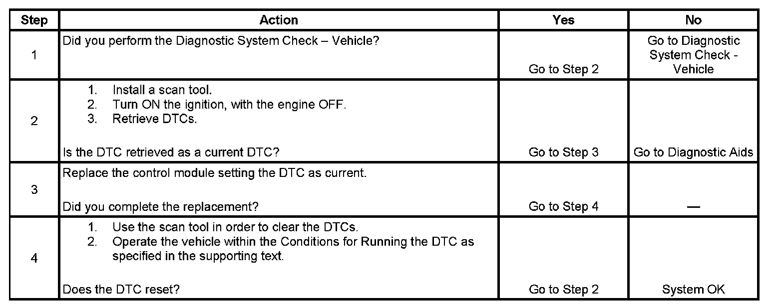 - If this DTC is retrieved as both a current and history DTC, replace the module.
