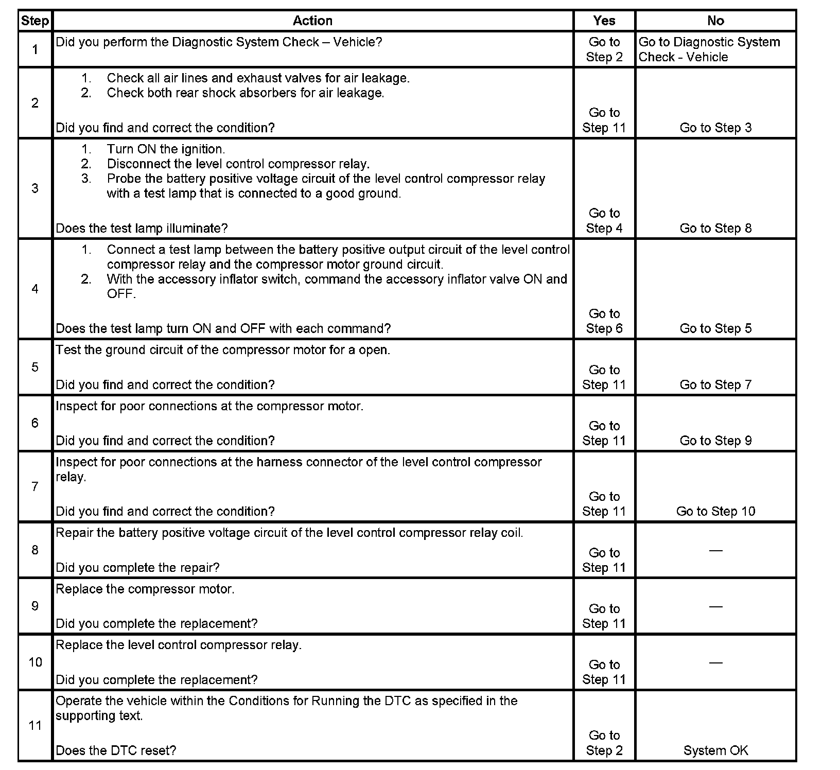 10. This step verifies that the level control compressor relay is replaced.