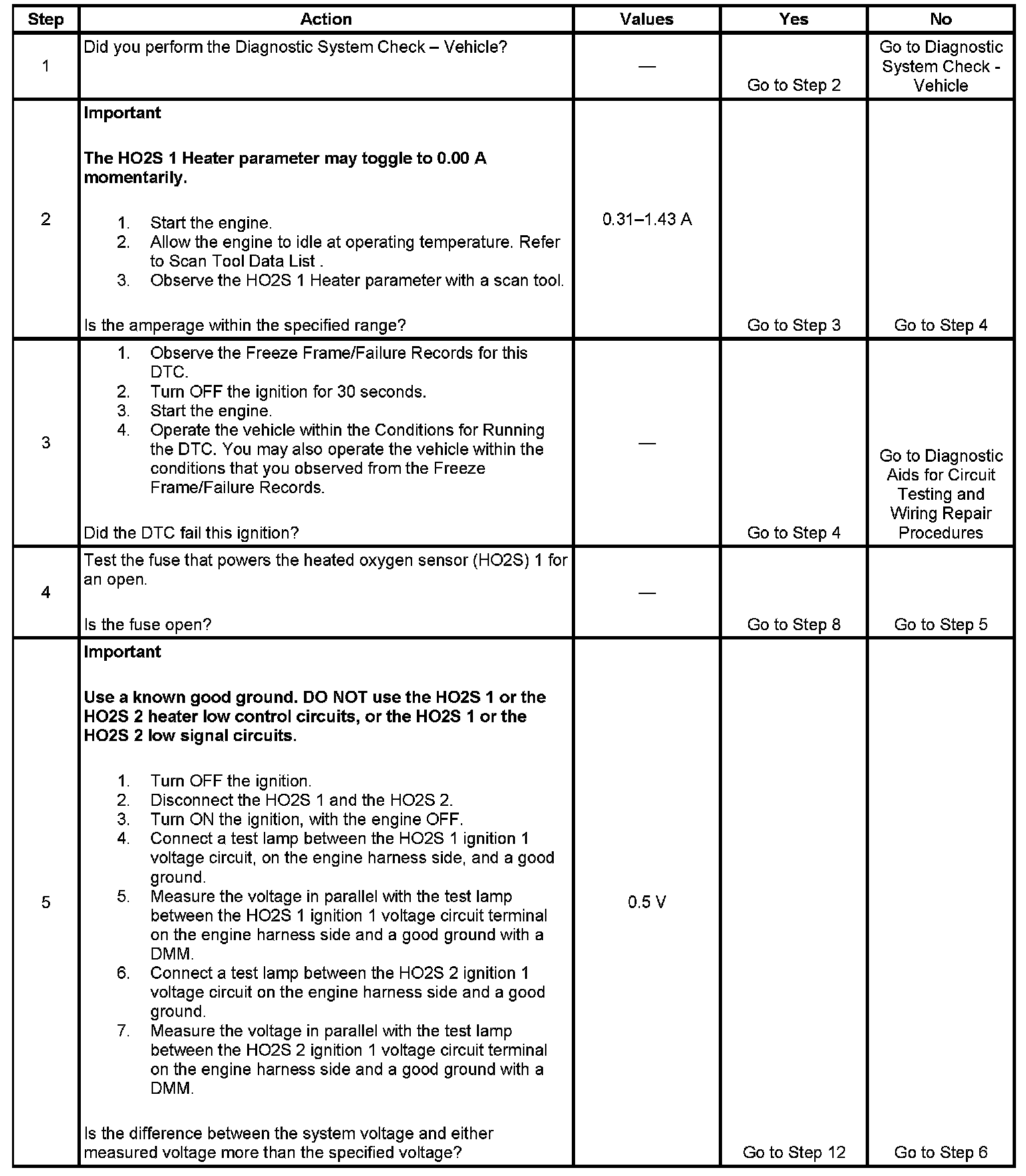5. This step determines if high resistance is present in the HO2S 1 ignition 1 voltage circuit.