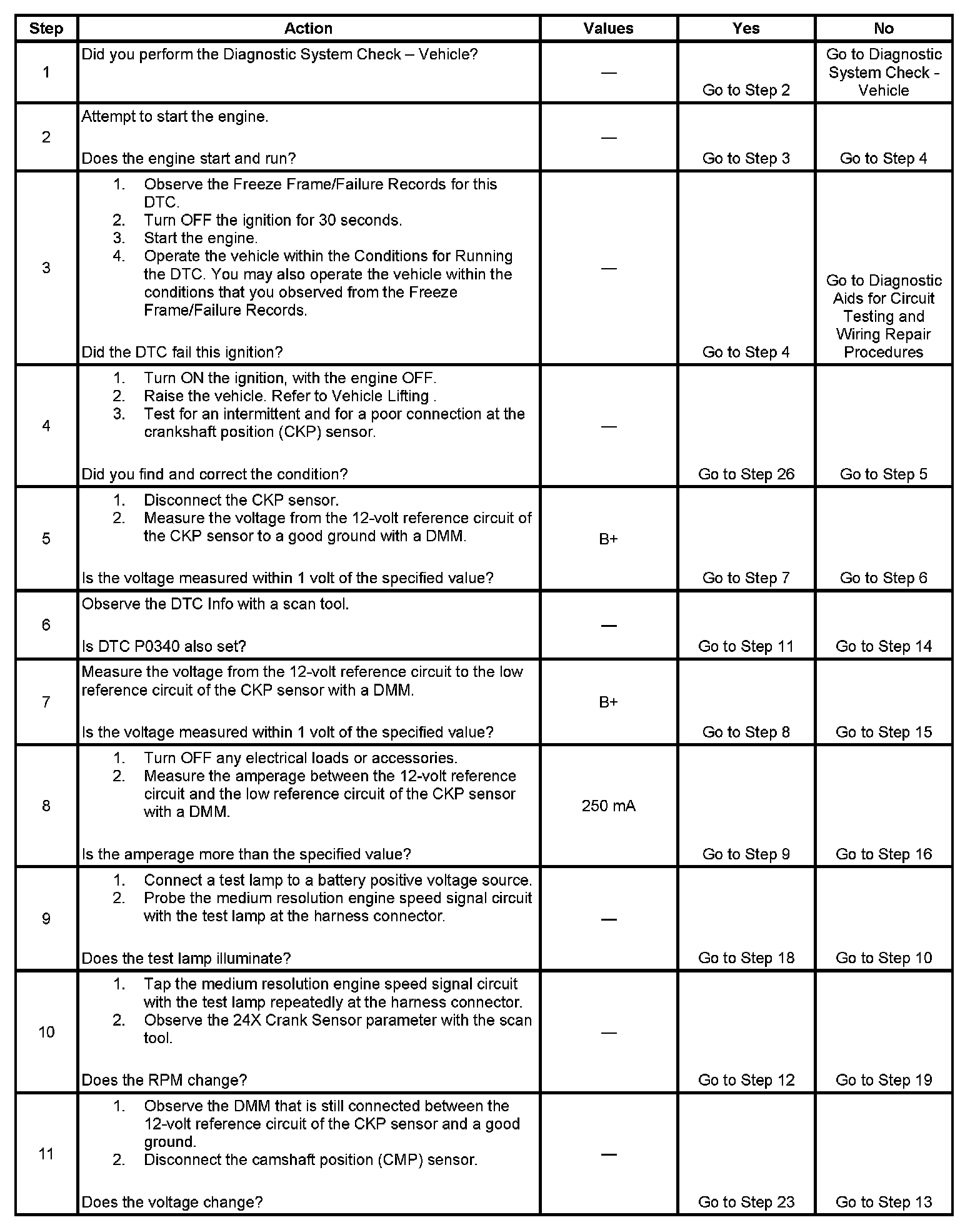 6. An internally shorted CMP sensor, CKP sensor, or a short to ground on either 12-volt reference circuit will set DTCs P0335 and P0340.