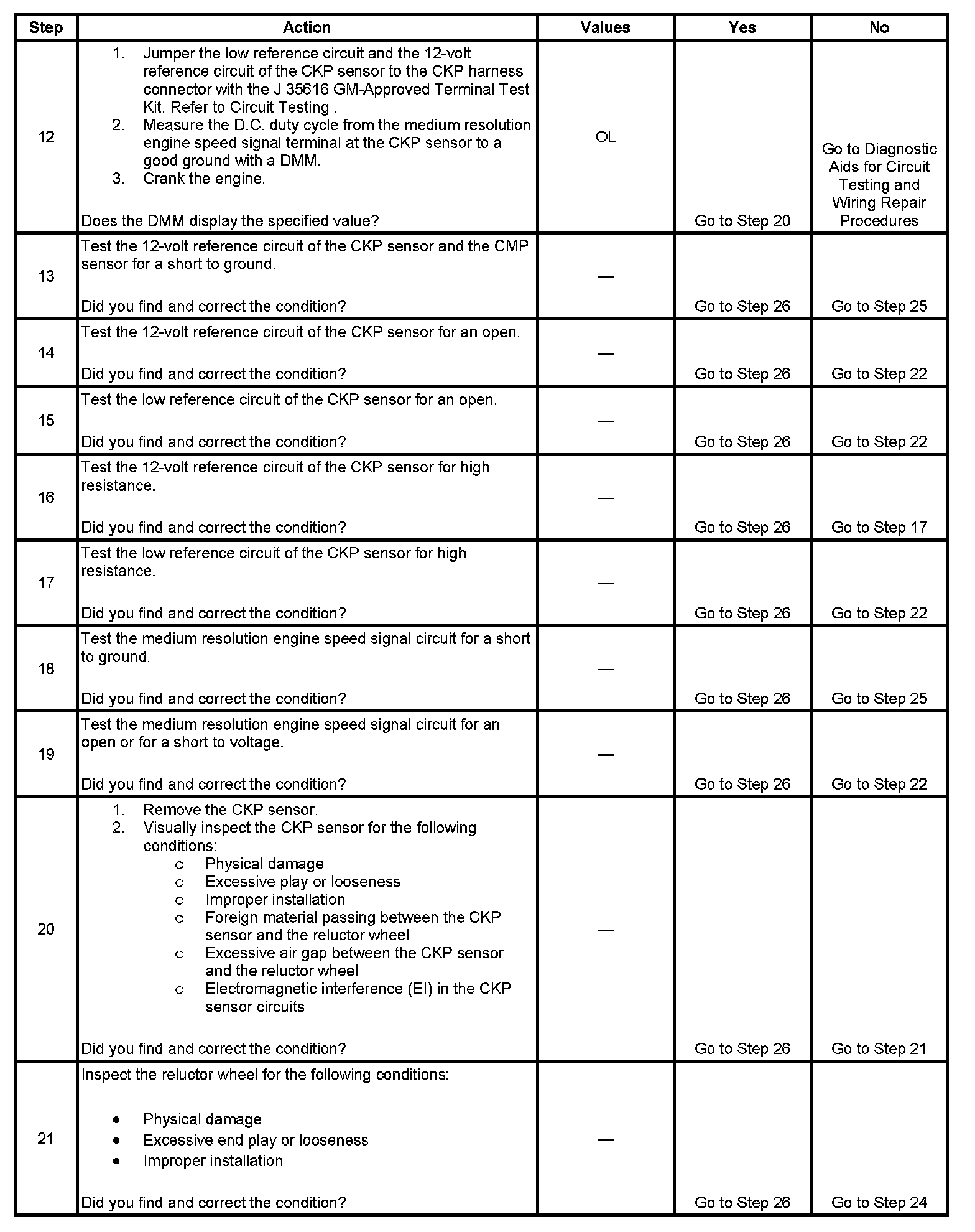 8. This step tests for high resistance in the 12-volt reference circuit and the low reference circuit.