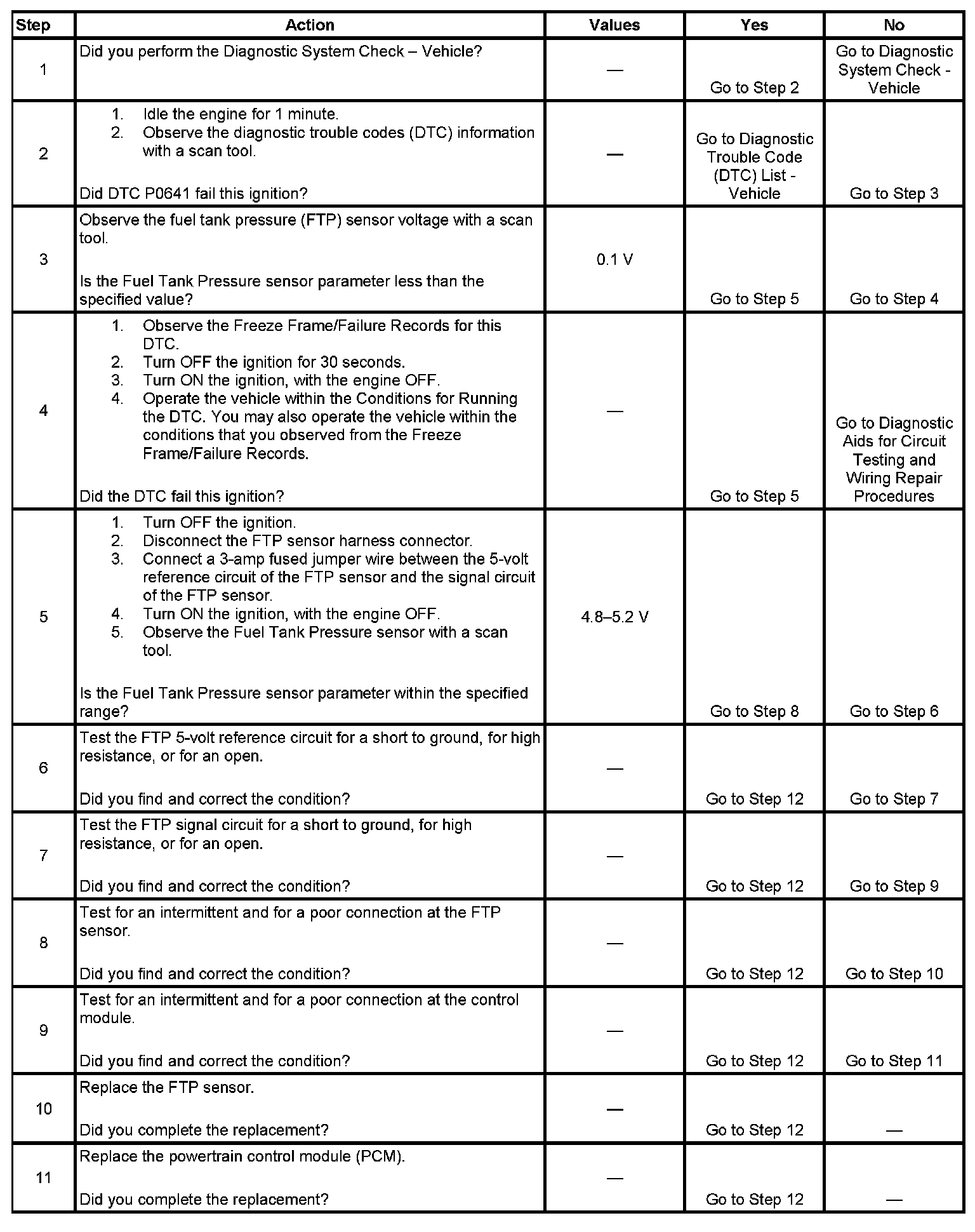 The fuel tank pressure (FTP) sensor measures the difference between the air pressure or vacuum in the evaporative emission (EVAP) system, and the outside air pressure. The control module supplies a 5-volt reference and a low reference circuit to the FTP sensor. The FTP sensor signal circuit voltage varies depending on EVAP system pressure or vacuum. If the FTP sensor signal voltage goes below a calibrated value, this DTC sets.