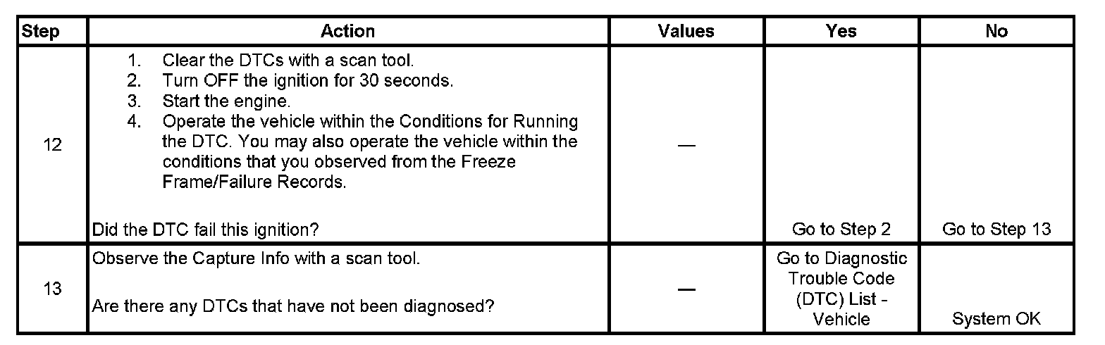 - A current DTC, Last Test Failed, clears when the diagnostic runs and passes.